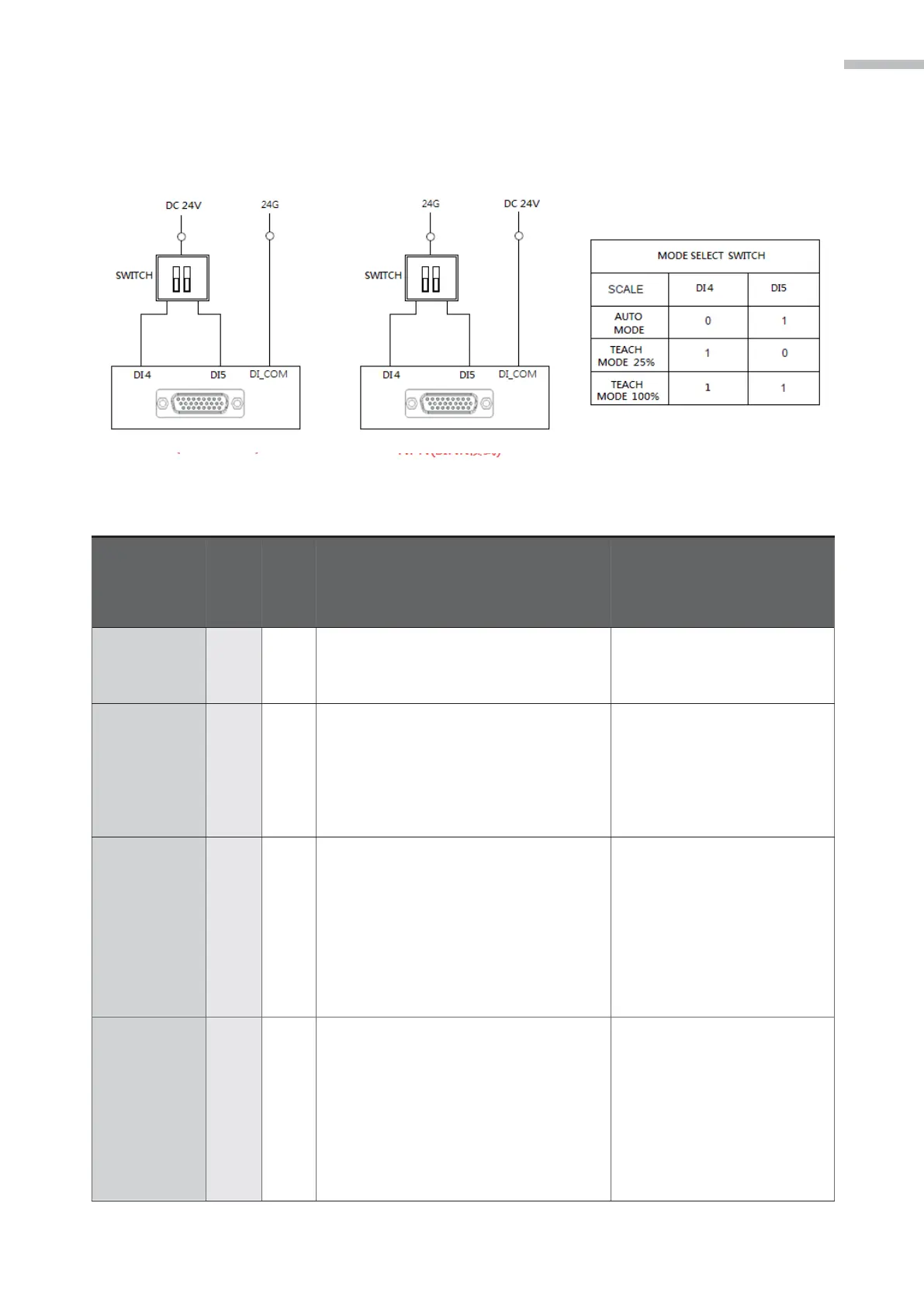The mode selection is planned via 2 input points, as shown in the figure below.