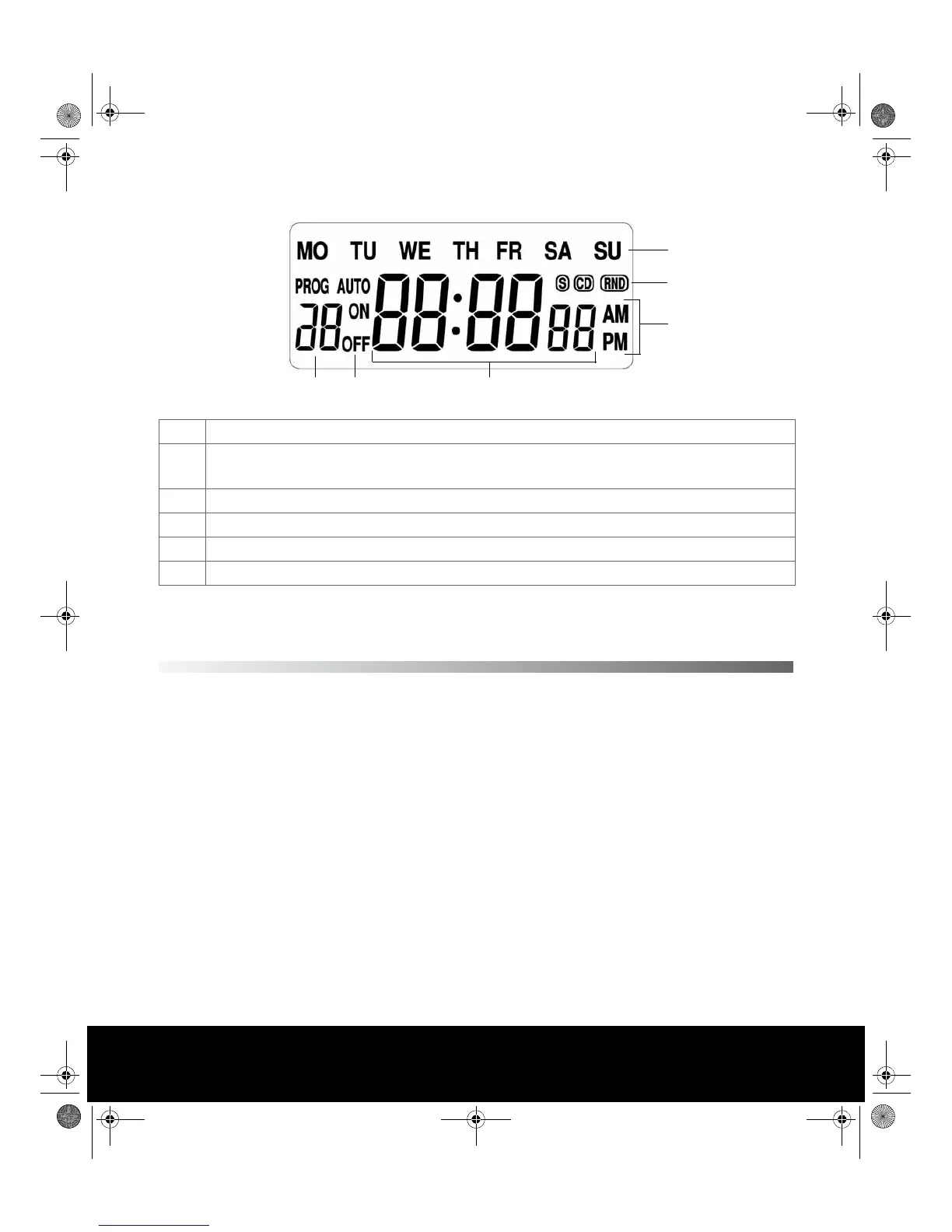 S - Daylight saving time, CD - Countdown function, RANDOM - Random function