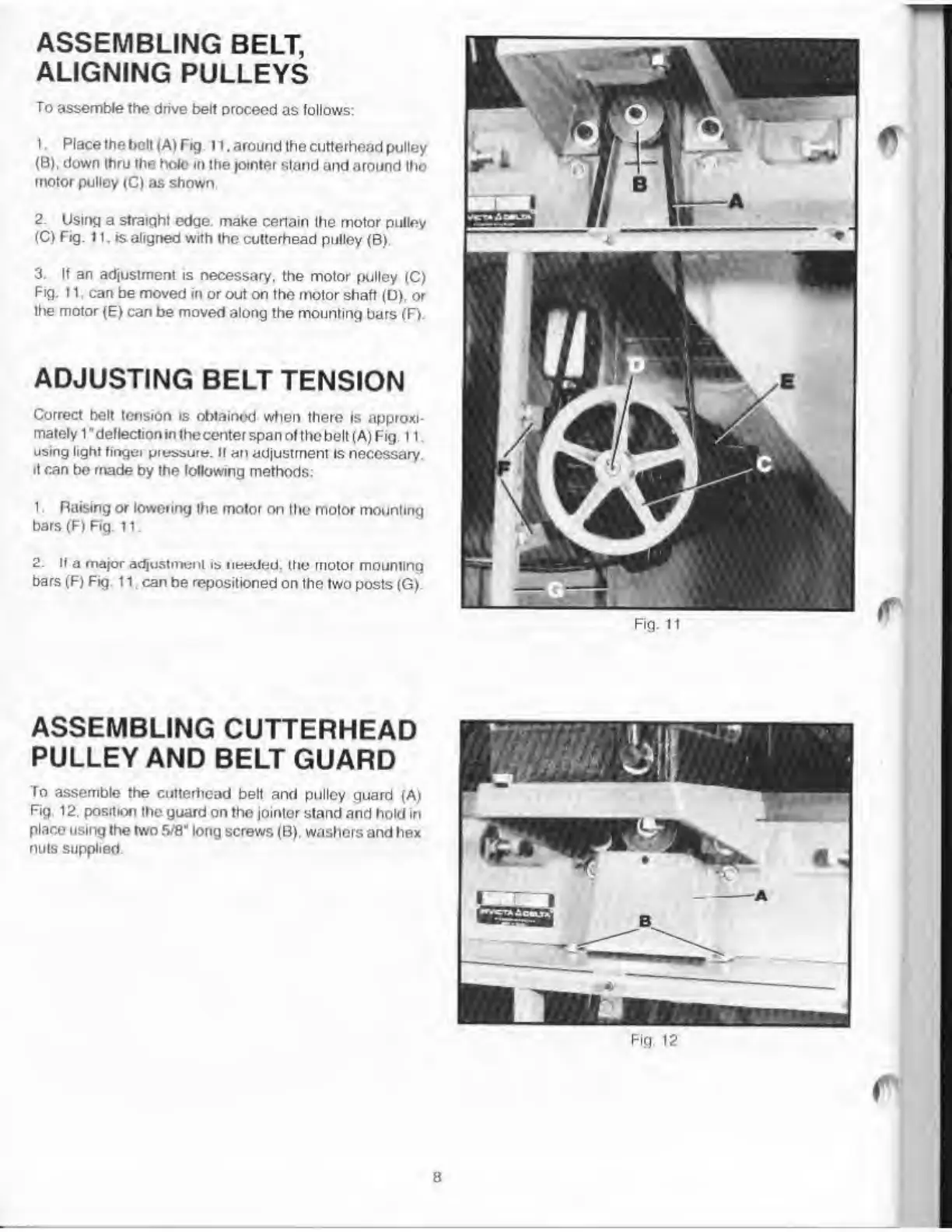 Delta DJ-15 - Drive Belt and Pulley Assembly; Adjusting Belt Tension