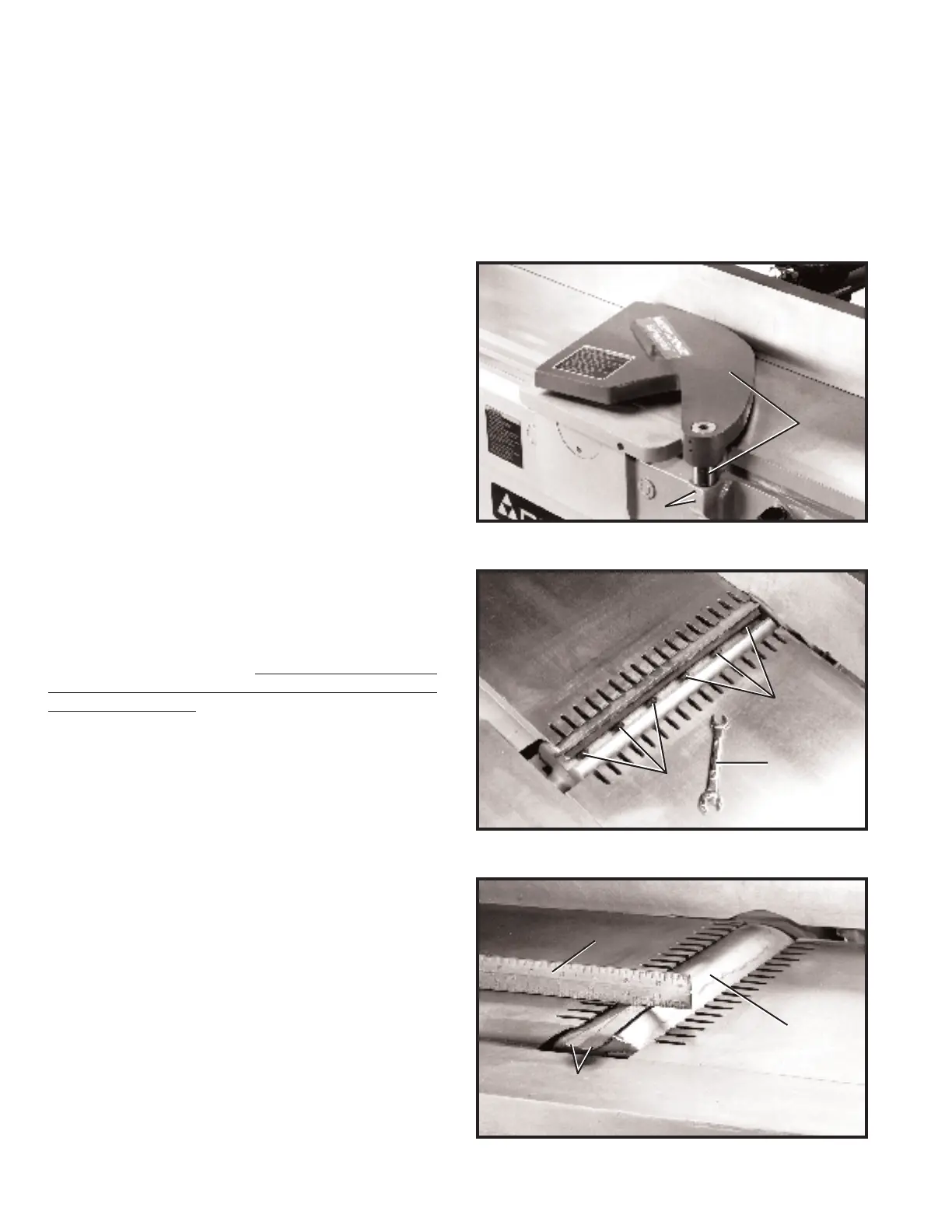 If the knives are removed from the cutterhead for replacement or regrinding, care must be used