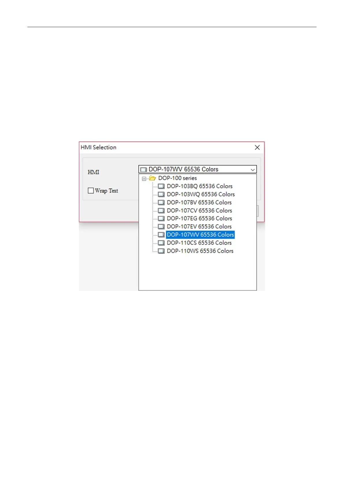 a window pops up for you to select the alternative DOP-100 series model (i.e. DOP-103BQ or