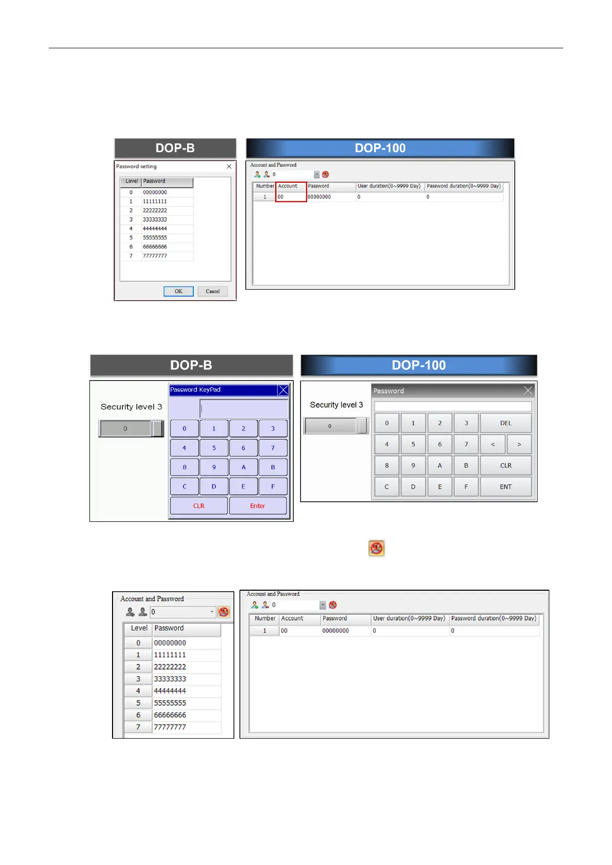 For DOP-B, you do not need to enter a user account for the Security Level and Password.