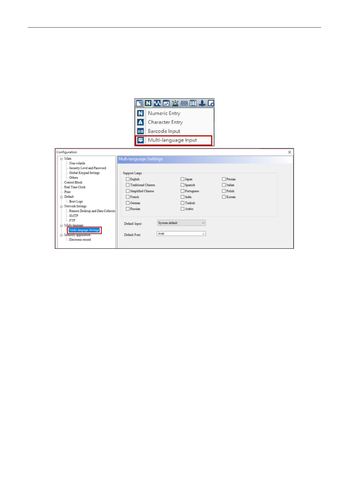 The Multi-language Input function is only available on the following models: DOP-103WQ,