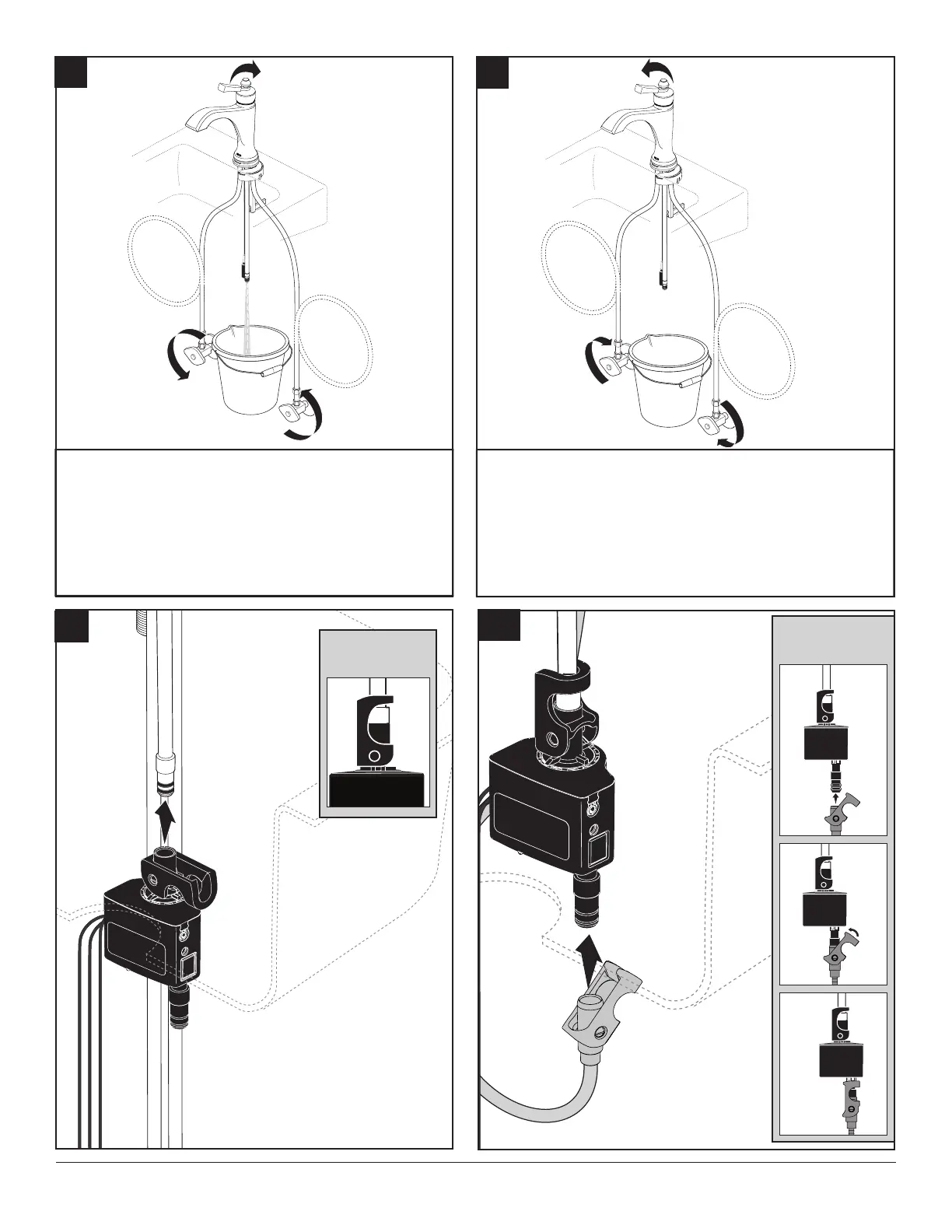 Close water supplies and valve stem (or handle, depending on model) and remove bucket.