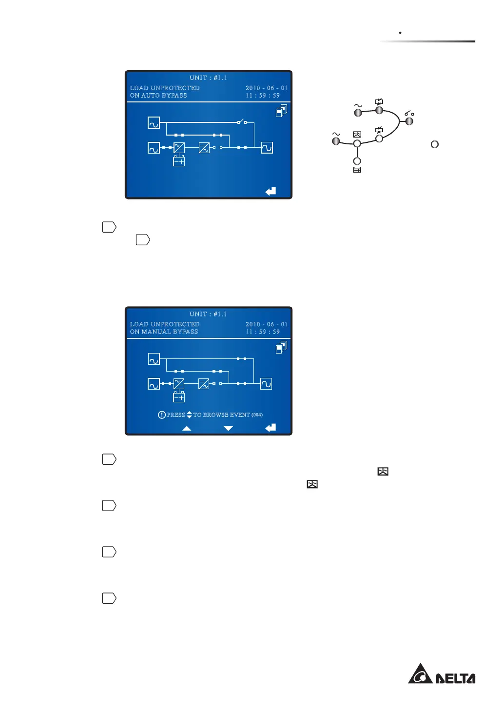 the connected loads and each UPS’s LCD shows ‘LOAD UNPROTECTED ON