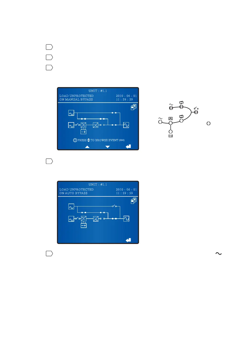Turn off each UPS’s Manual Bypass Switch (Q3). Per unit transfers into bypass