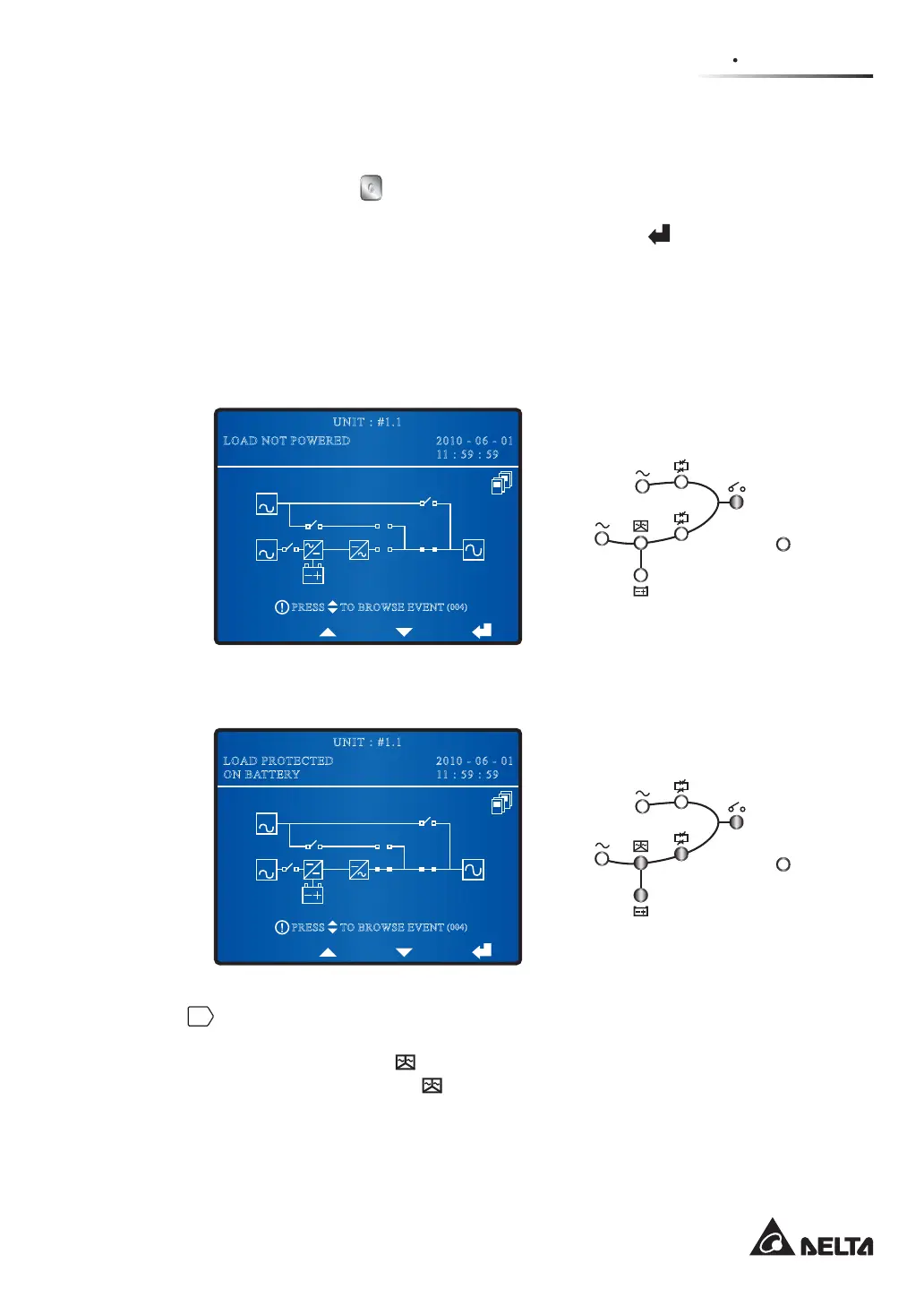 The status of the LCD and LEDs for the remaining parallel UPSs:
