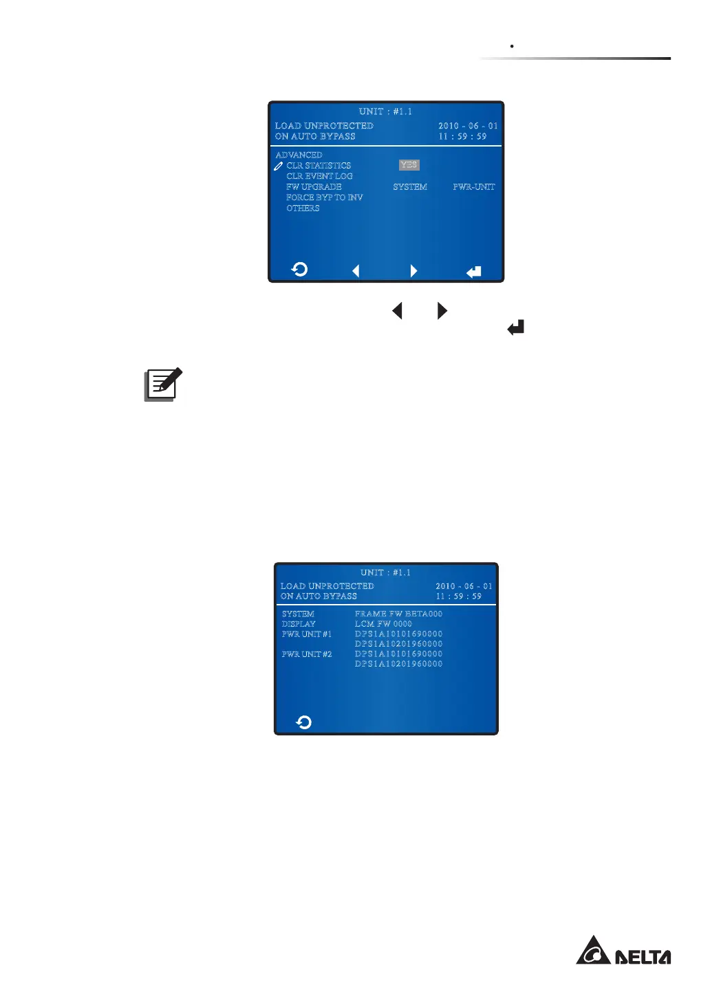 The firmware version screen above shows you the system, display and power unit’s
