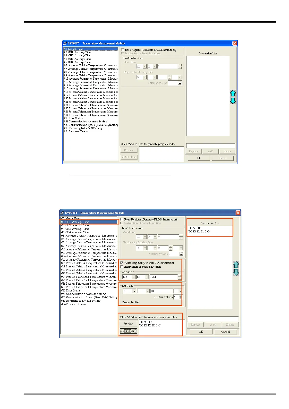 Step 5: Click “Add to List” to display the instruction codes in “Instruction List”. The setup of CR#2 ~ CR#5 is