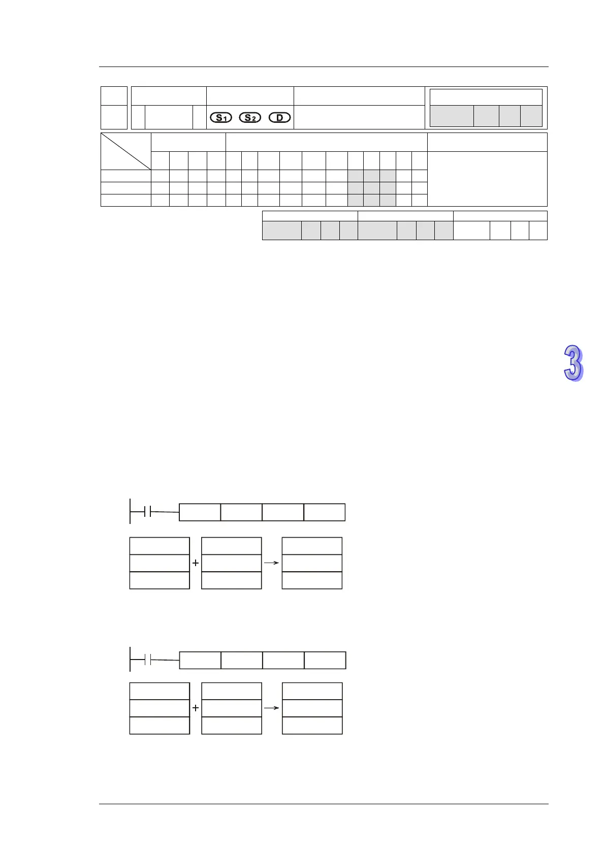 When X0 = ON, TADD instruction executes and the time value in D0~D2 is added with the time