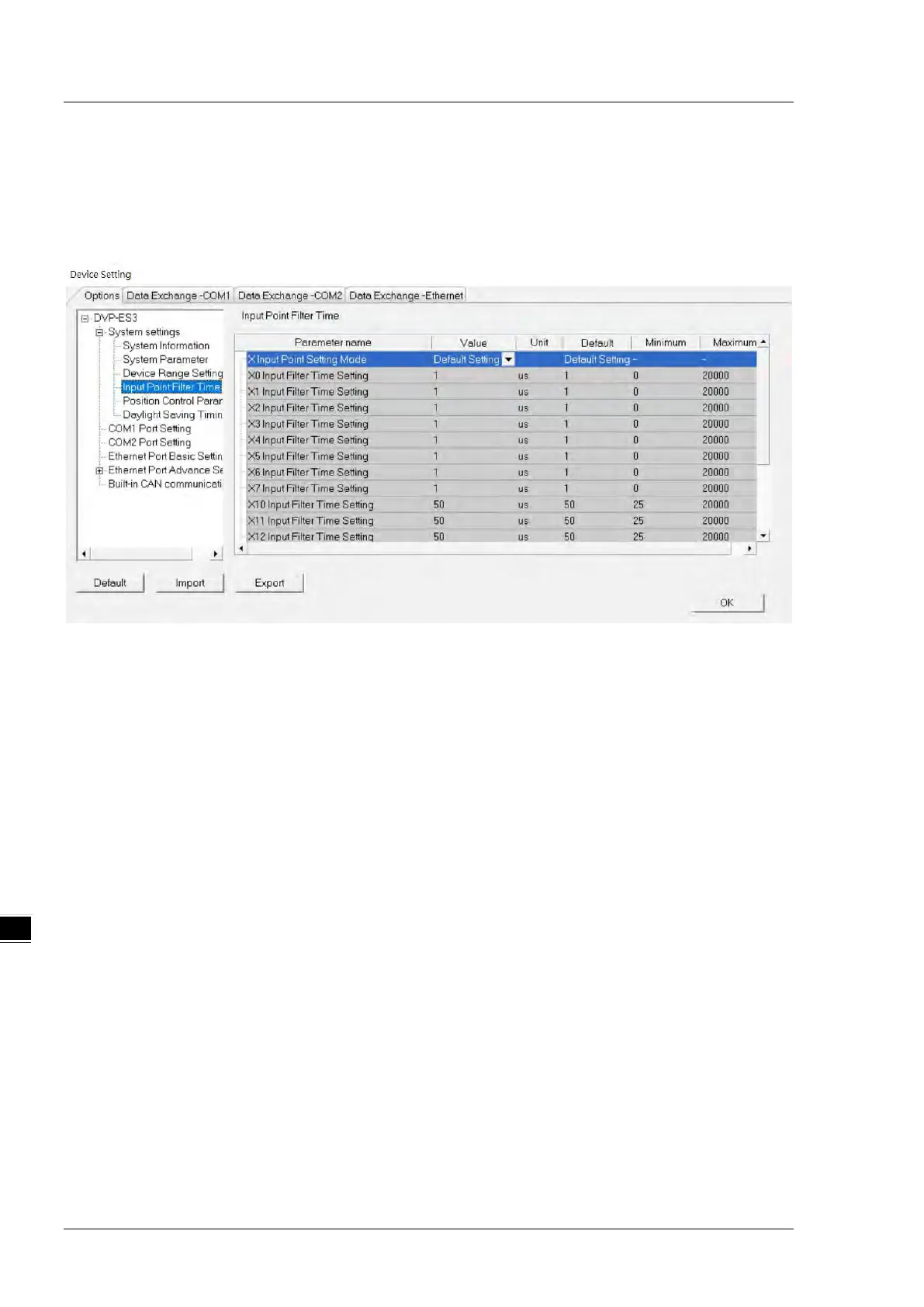 If you select Manual Setting for the previous parameter, you can set the filter time individually for X0–X17.