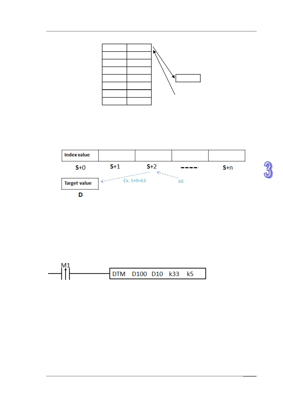 4. If M0 switches OFFON, execute the instruction DTM will copy the values stored in D105