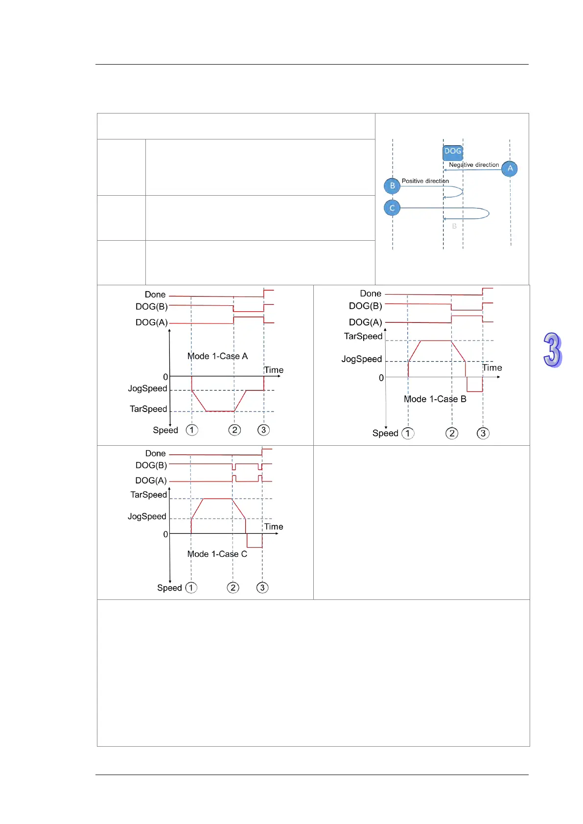 Mode 1The axis starts to go toward the negative direction and then stops after leaving the