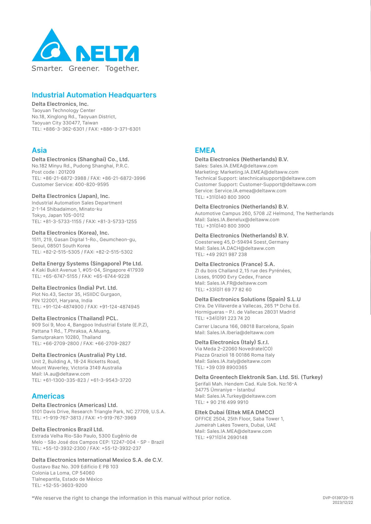 *We reserve the right to change the information in this manual without prior notice.