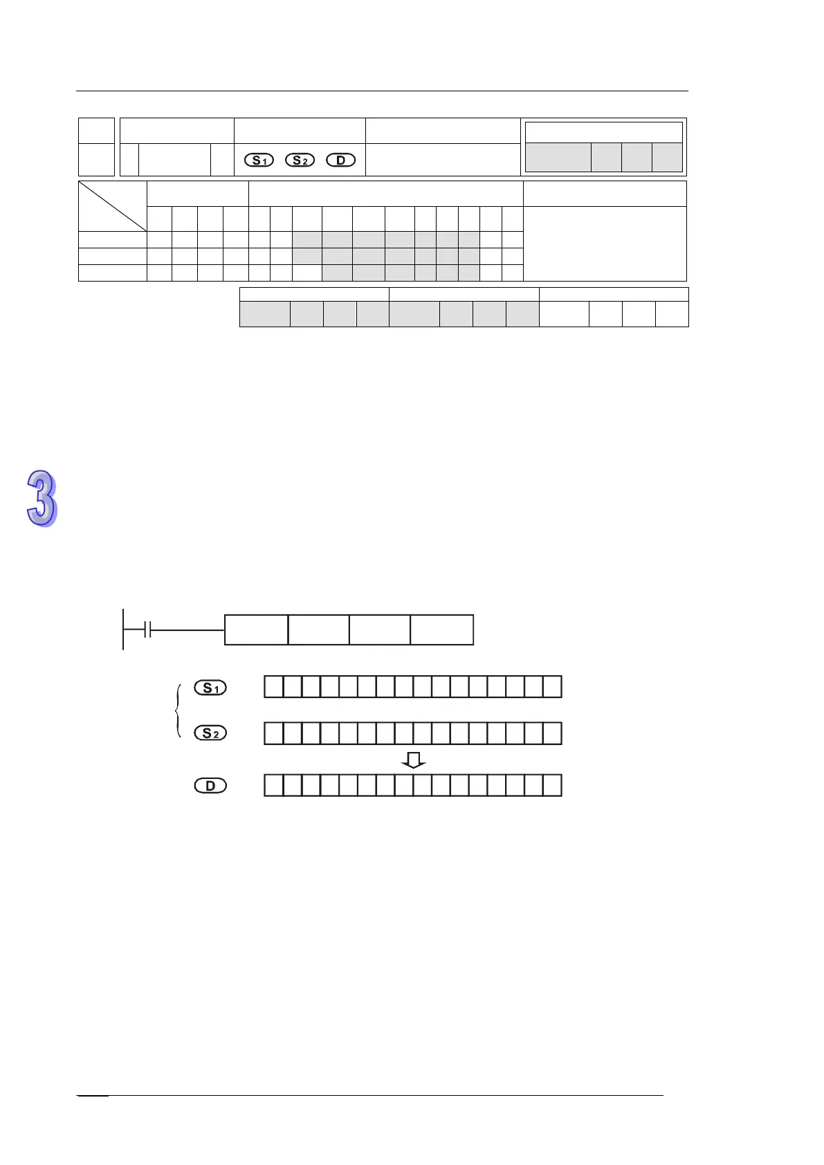 When X0 = ON, the 16-bit source D0 and D2 are analyzed and the operation result of the logical