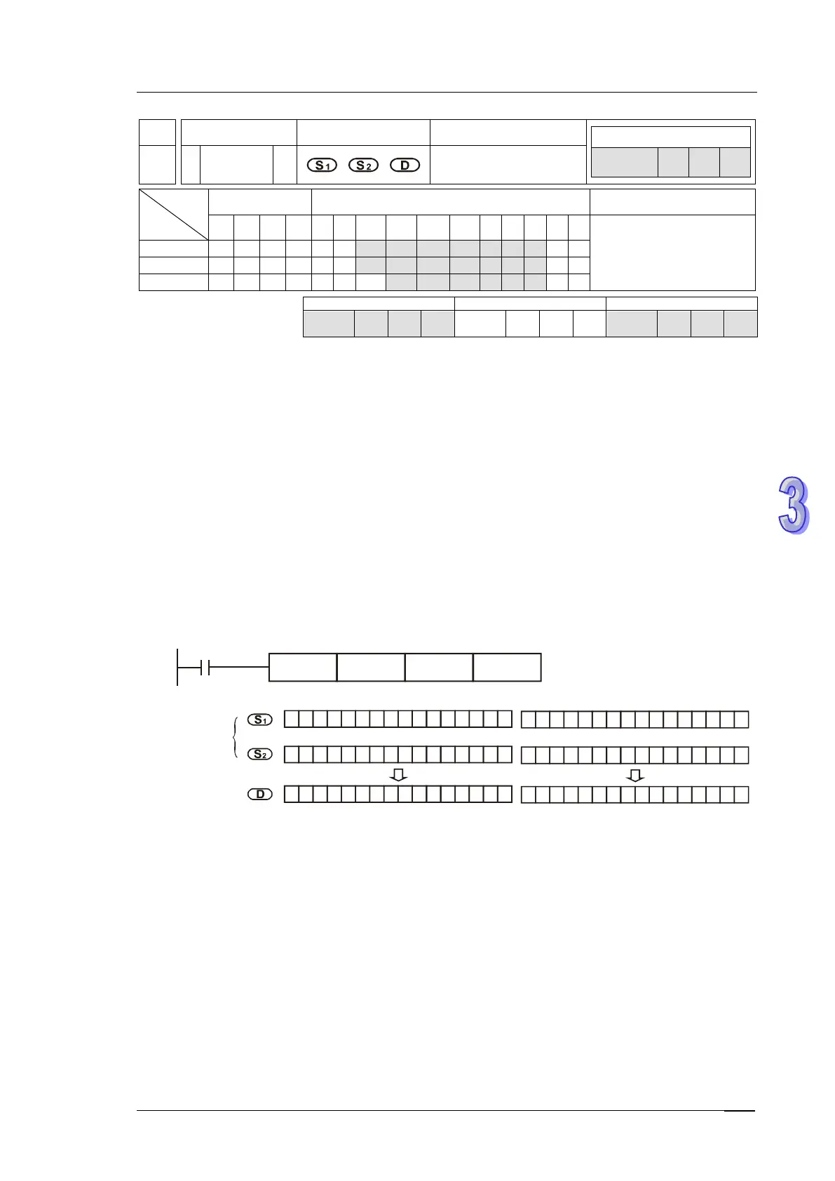 When X1 = ON, the 32-bit source (D11, D10) and (D21, D20) are analyzed and the result of the