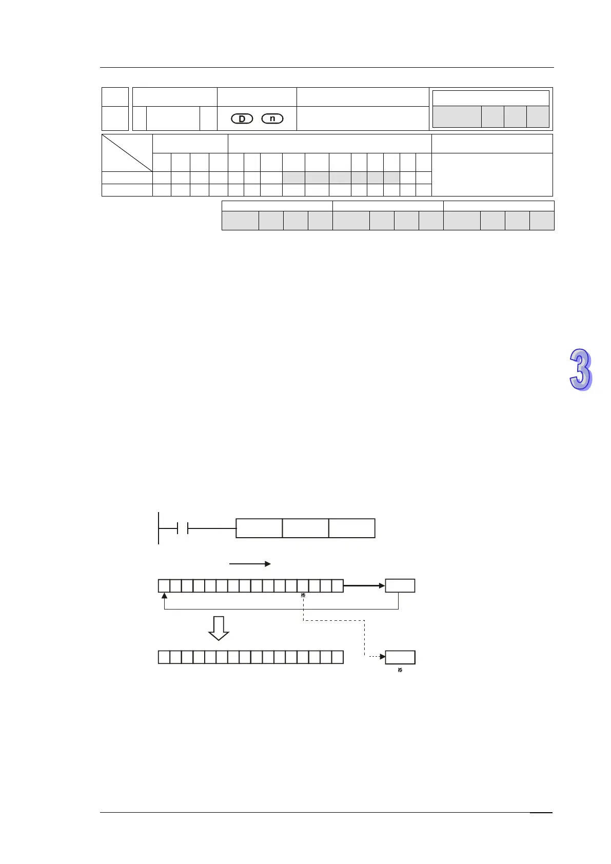 1. This instruction rotates bit status of the device D together with M1022 to the right for n bits.