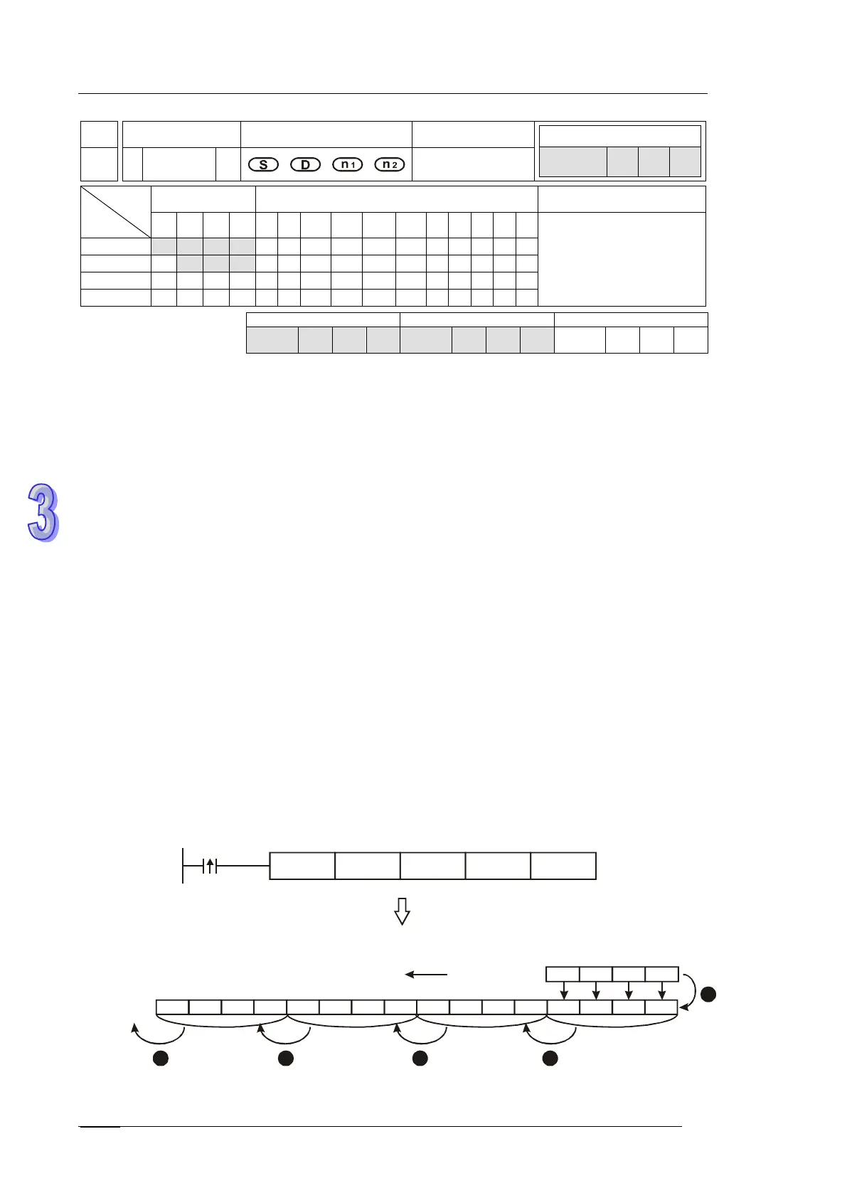 1. When X0 is rising edge triggered, SFTL instruction shifts X0~X4 into 16-bit data M0~M15 and