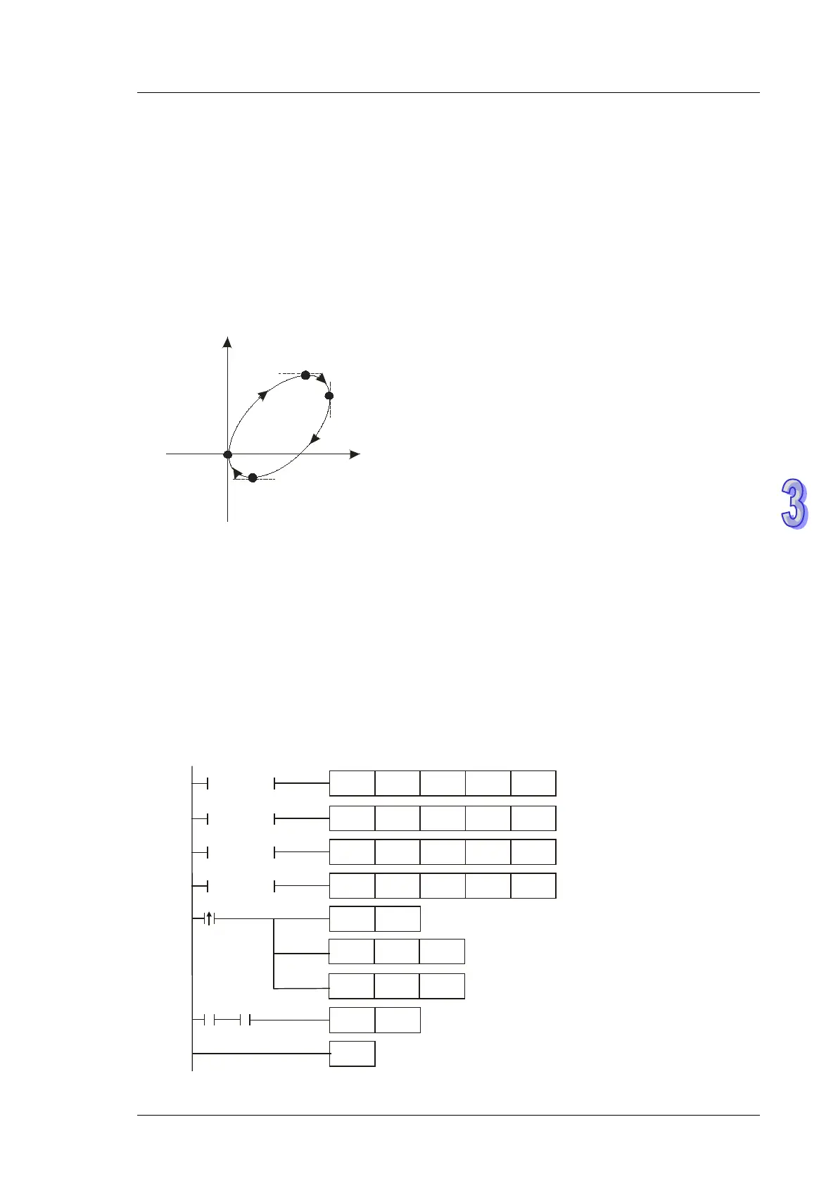 When PLC runs and M0 = ON, PLC will start the drawing of the first segment of the arc. D0 will