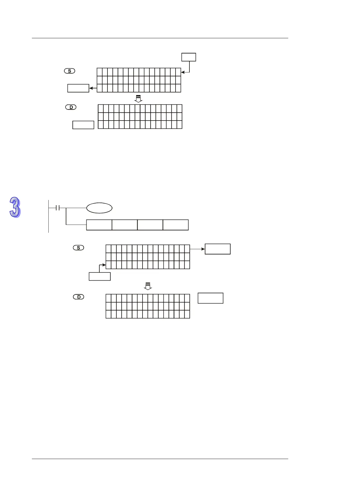 flag M1096 = ON (1) and the 16-bit registers D0 ~ D2 will perform a right matrix shift and the result
