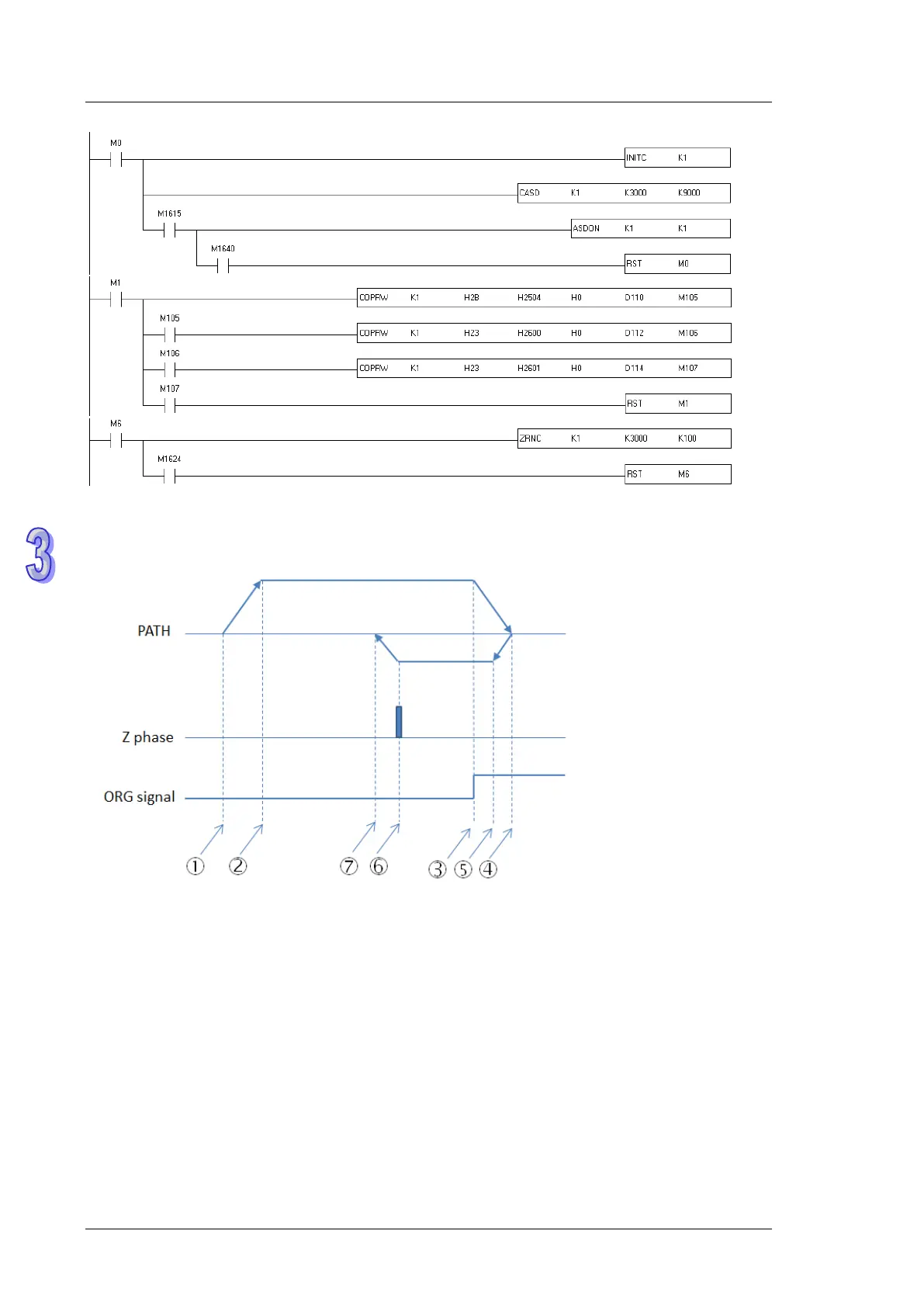 M1 = Off→On, starts homing and moves towards the reverse direction