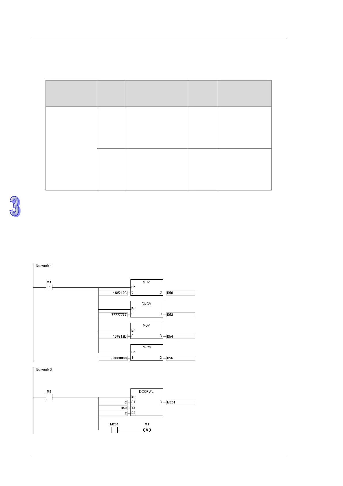 2. When M1 = OFF → ON, the instruction writes a 32-bit value for P1-44 of the servo whose