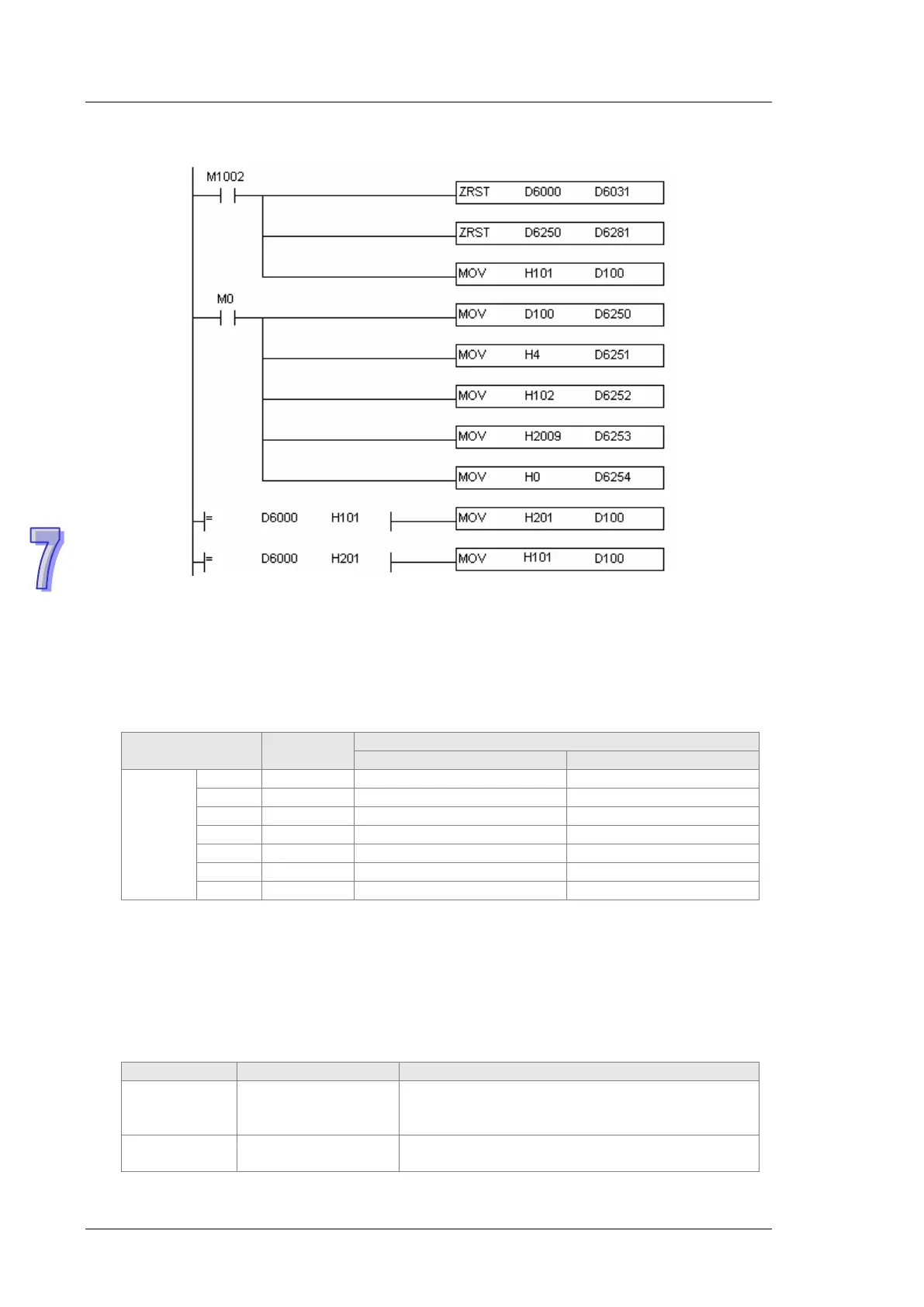 device are stored in D6000~D6005. The value of D6005: 100(hex)is the read value of P0-09.