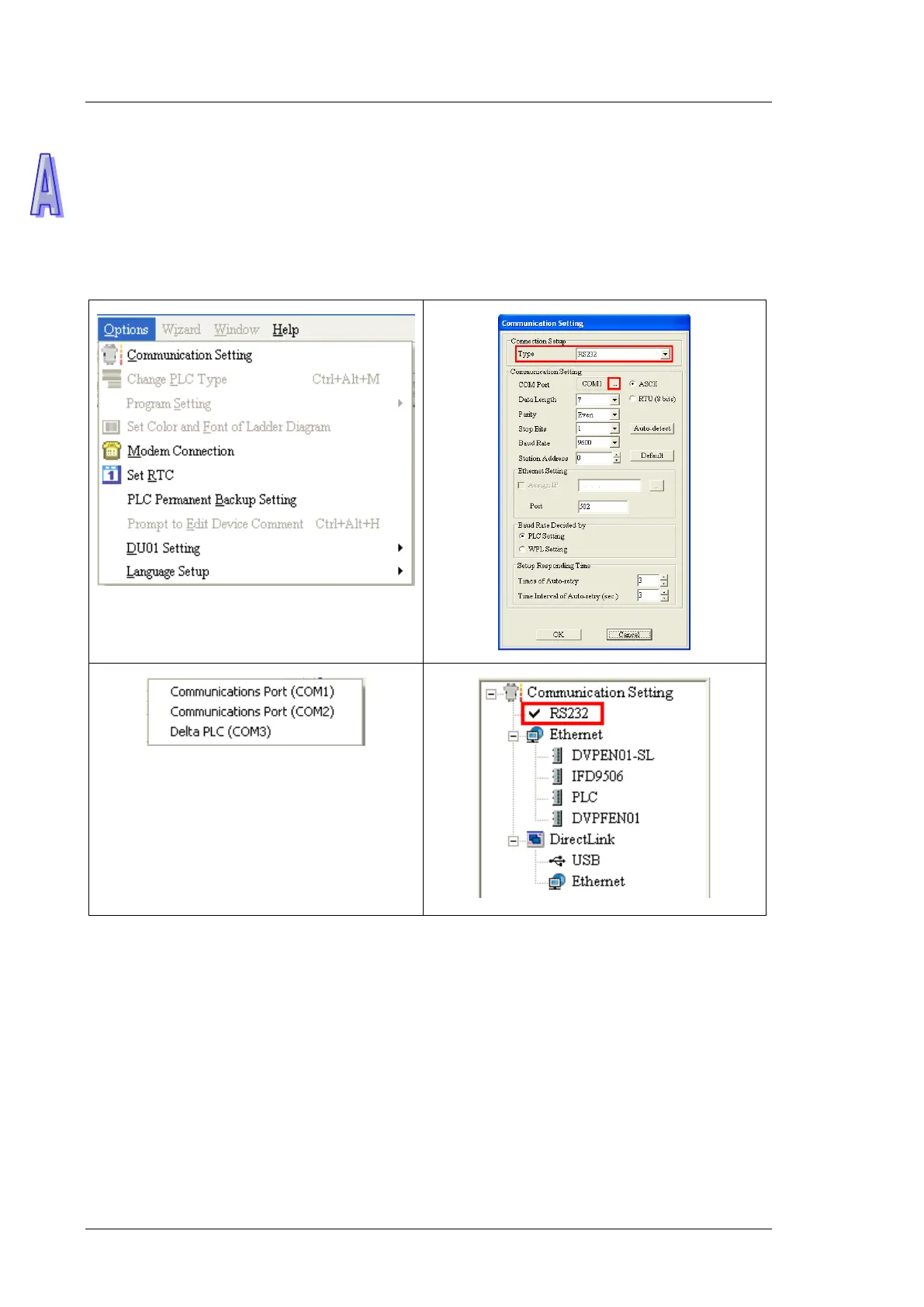 Select Communication Setting in Options to open the Communication Setting window. Select