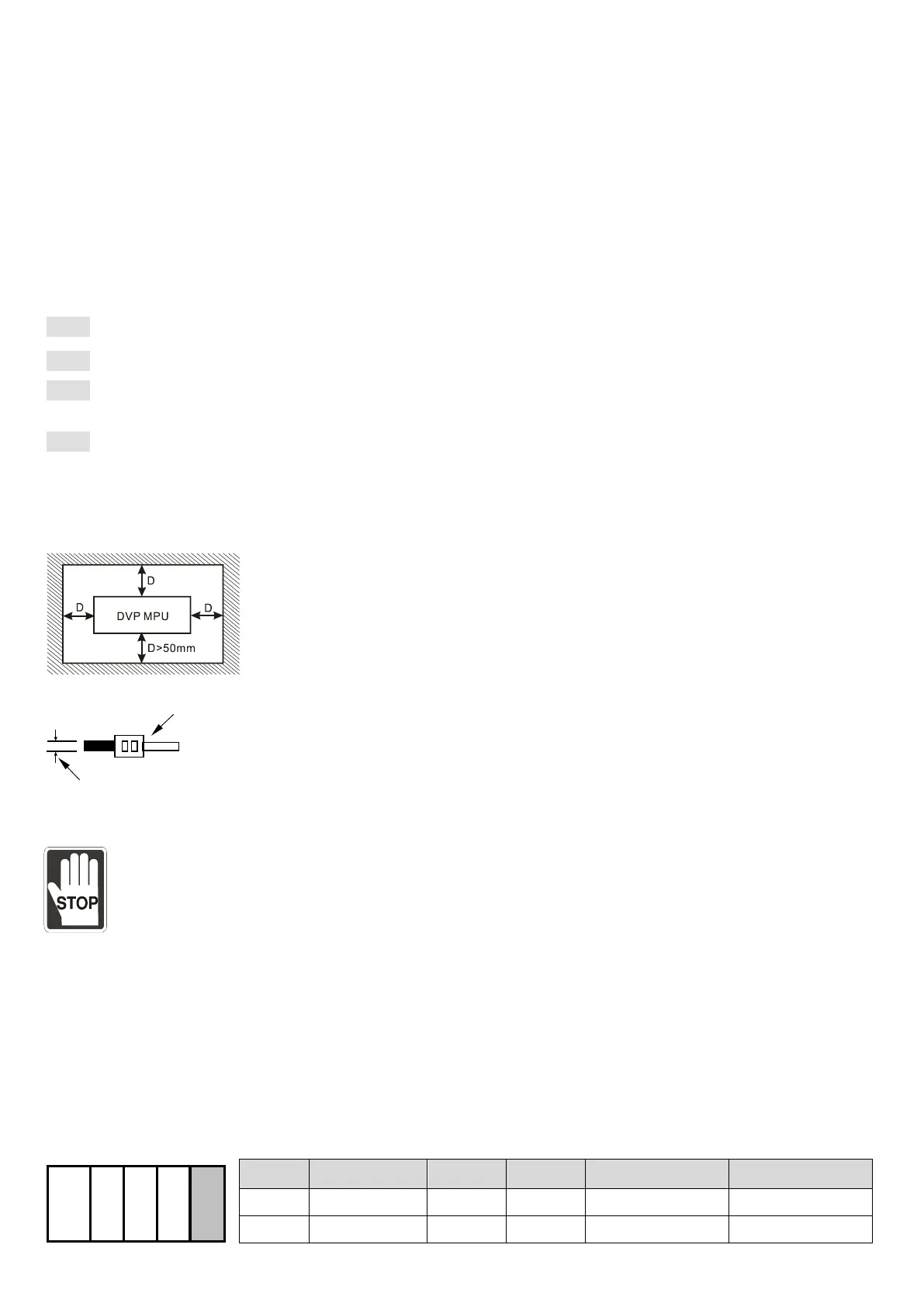 DVP 系列 PLC 在安裝時,請裝配於封閉式之控制箱內,其周圍應保持一定之空間(如下圖所示),以確保 PLC 散熱功能正