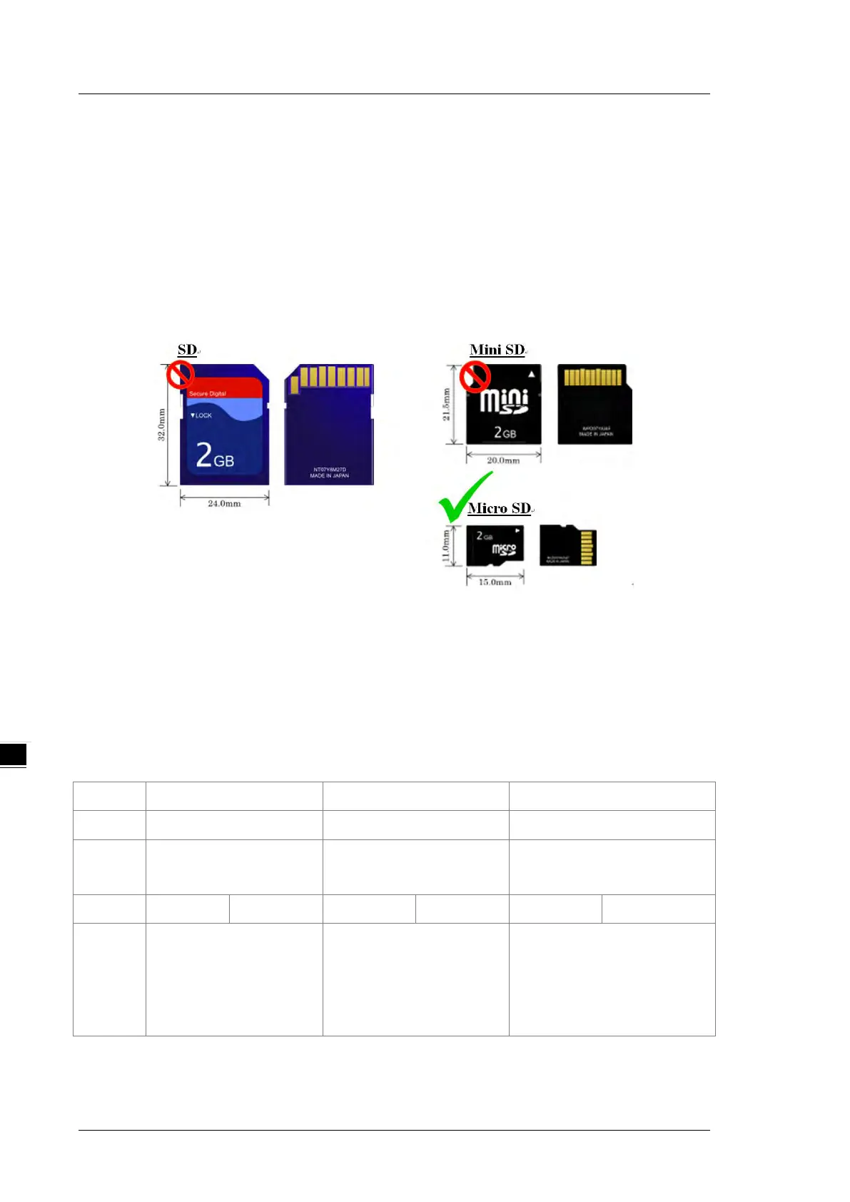 in the table below. The Micro SDHC in the SDHC column indicates the specifications supported by the