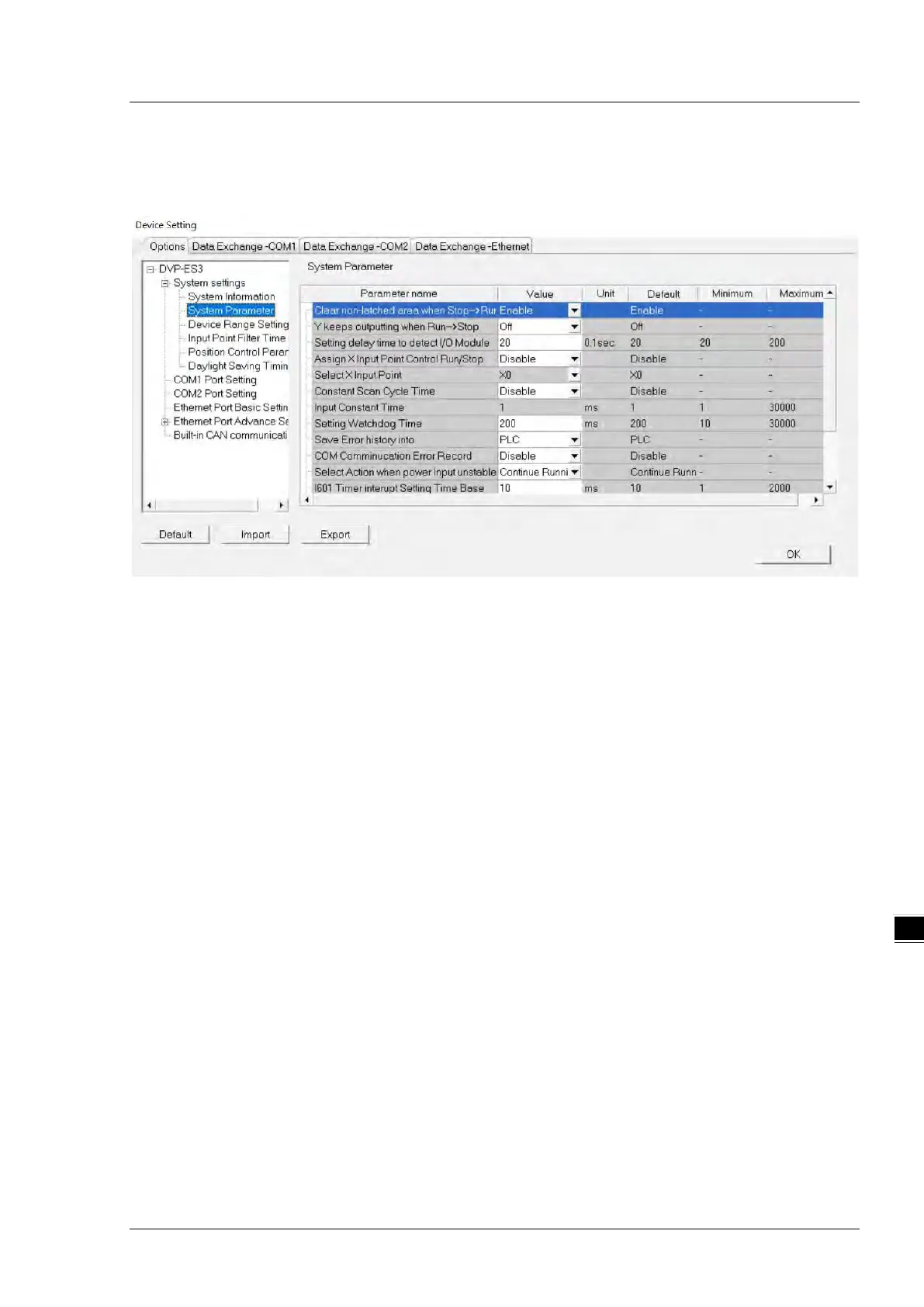 On the System Parameter page, you can set parameters by entering appropriate values or by selecting from a list.