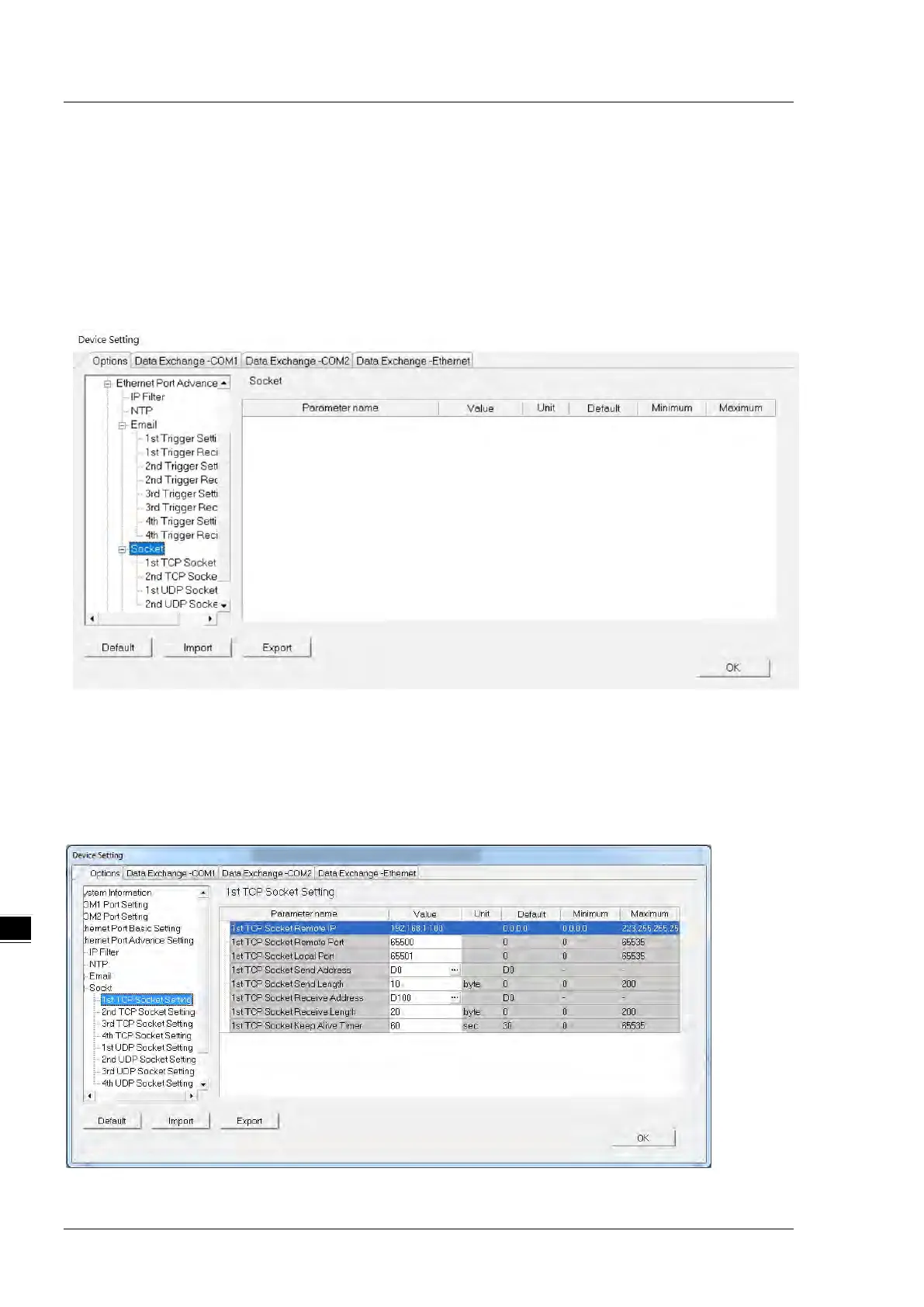 each of the four groups. Select the Socket Function Enable checkbox and then select settings in the TCP and UDP