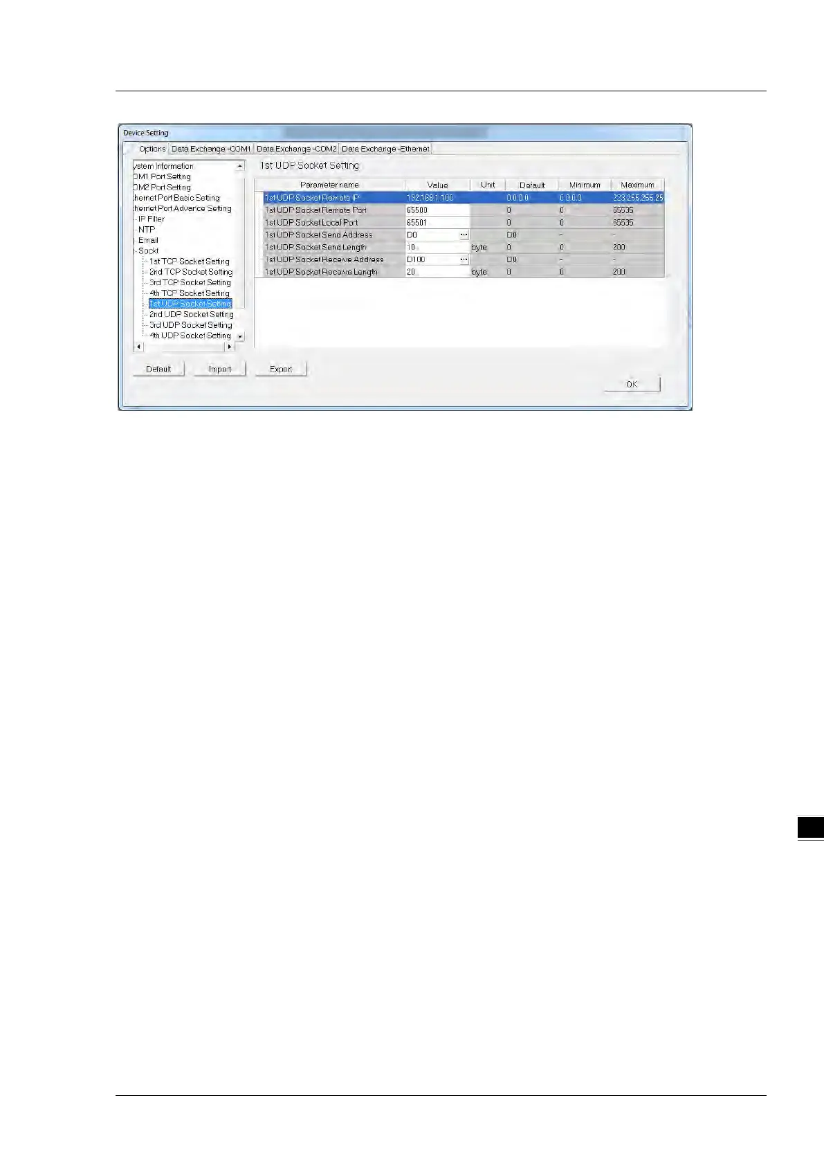 The parameters in the TCP Socket Setting are the same as the parameters in the UDP Socket Setting except that