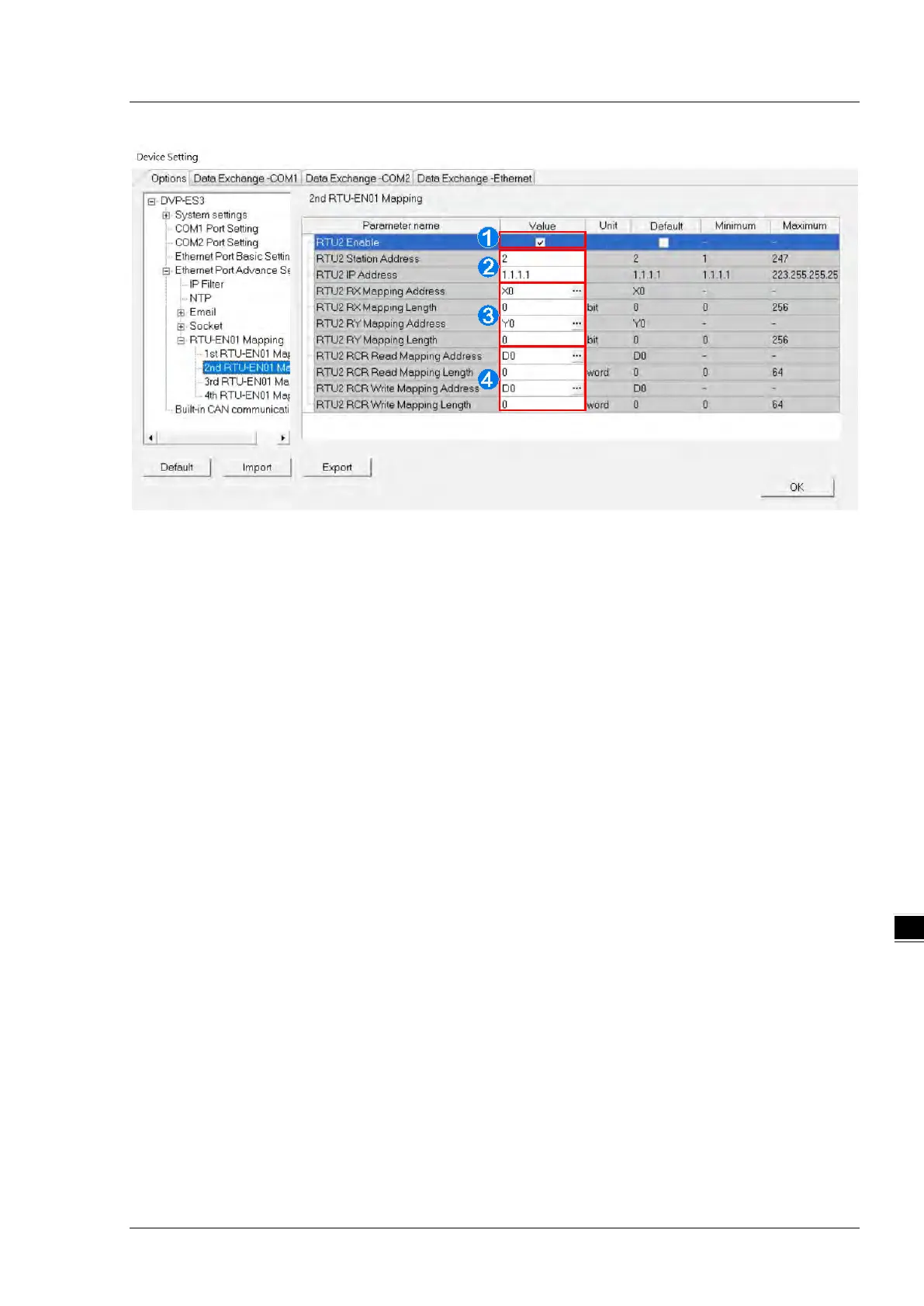 connected to RTU and mapped to X/M devices, as well as the length for the DVP-ES3 Series module. Set the