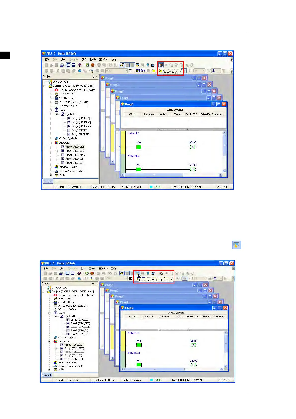 When the system is in the on-line monitoring mode, enter the on-line editing mode by clicking .