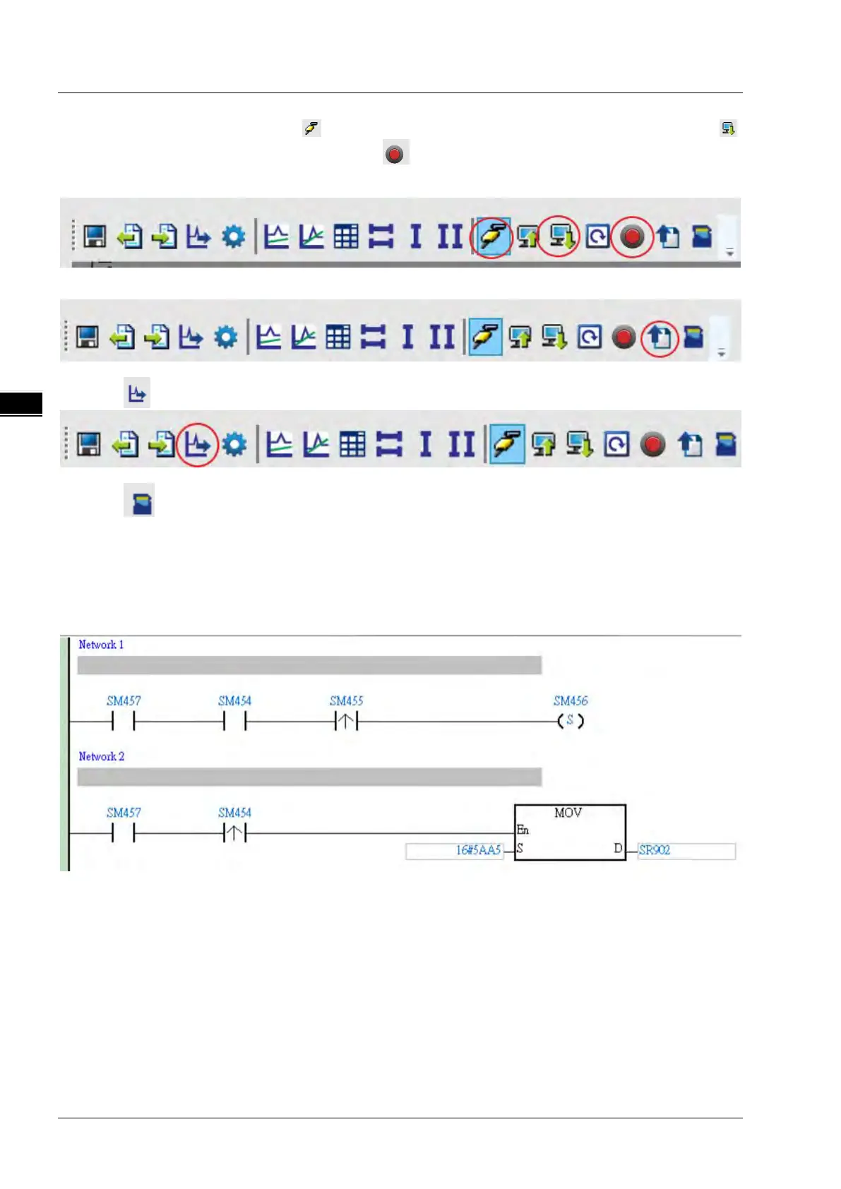 Click on the icon toolbar or use SM and SR to save the data to the SD Card installed on the PLC.