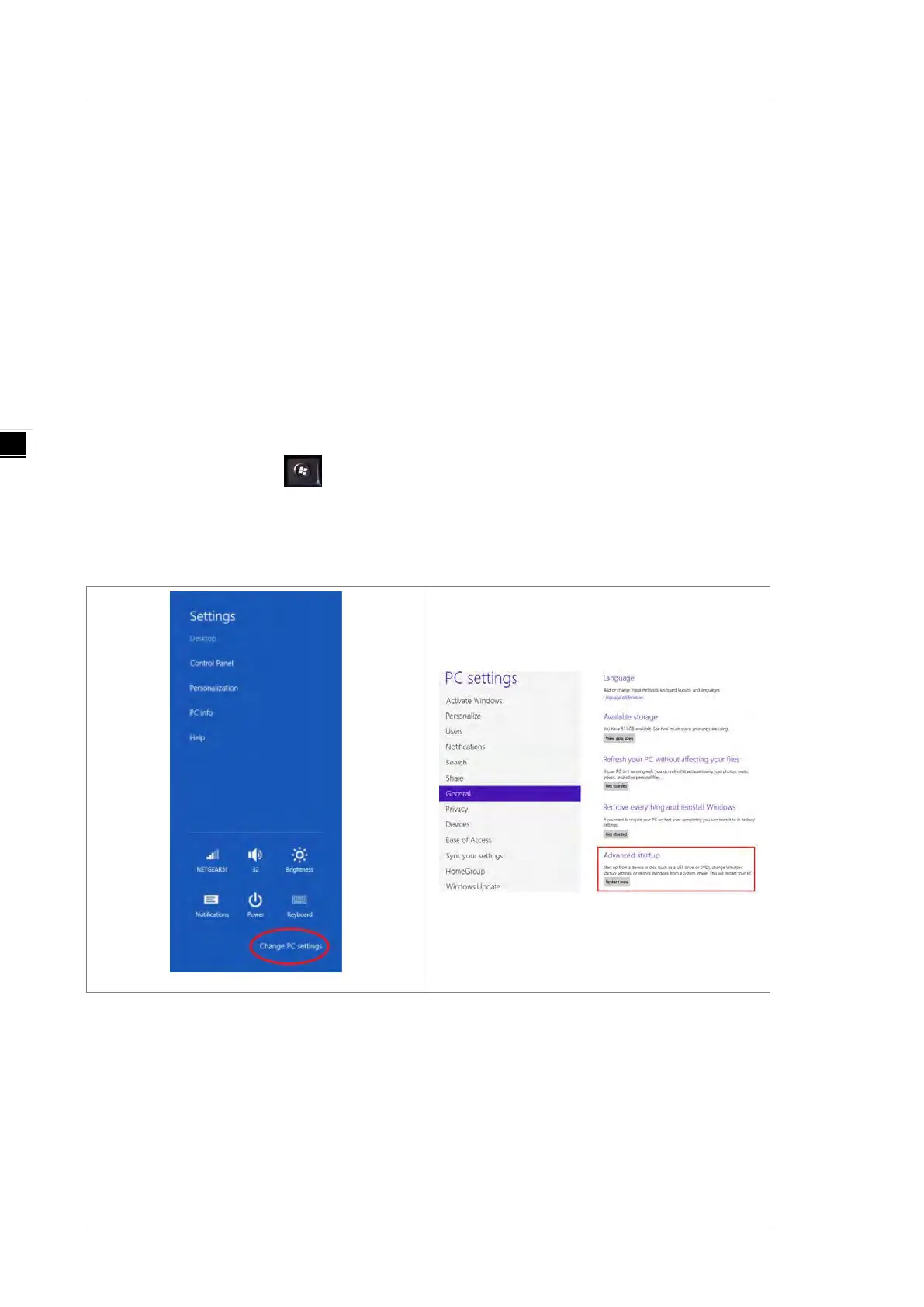 2. The PC settings window appears. Click General and then click Restart now under Advanced startup.