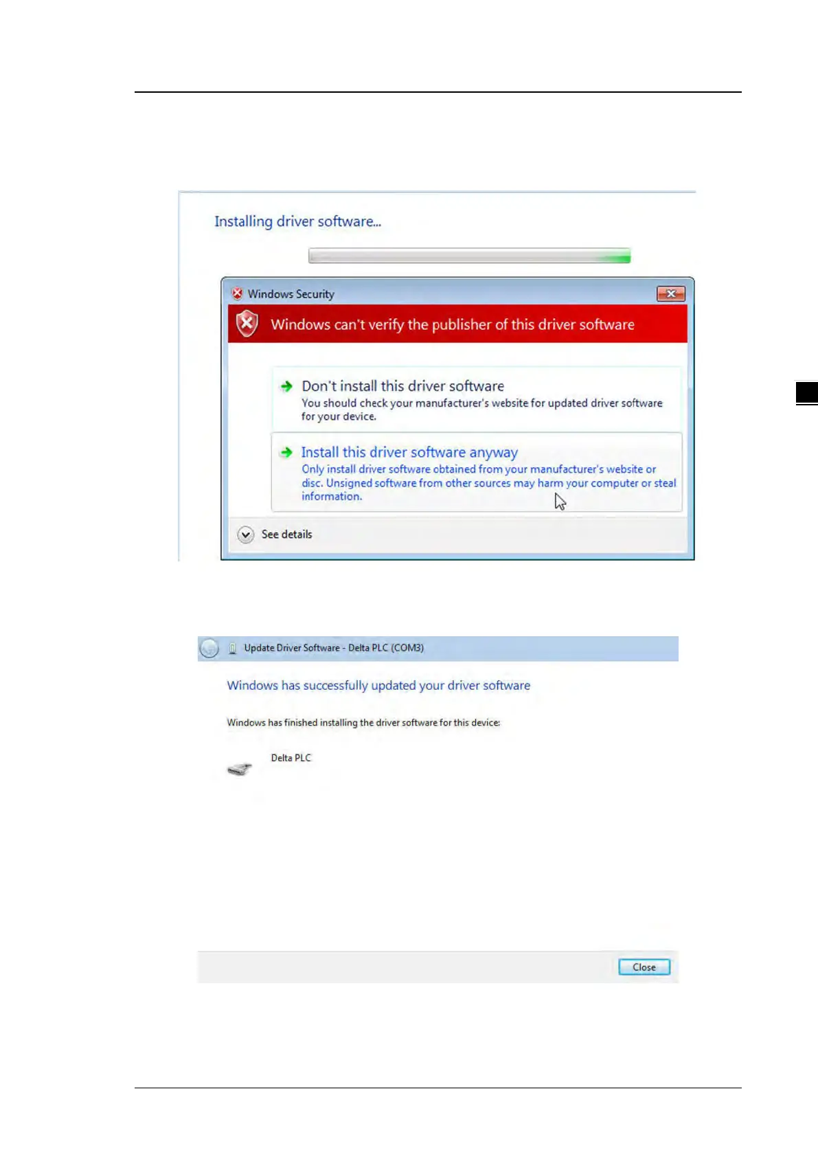 (5) Click OK. The system installs the driver. If the Windows Security window appears during the installation,