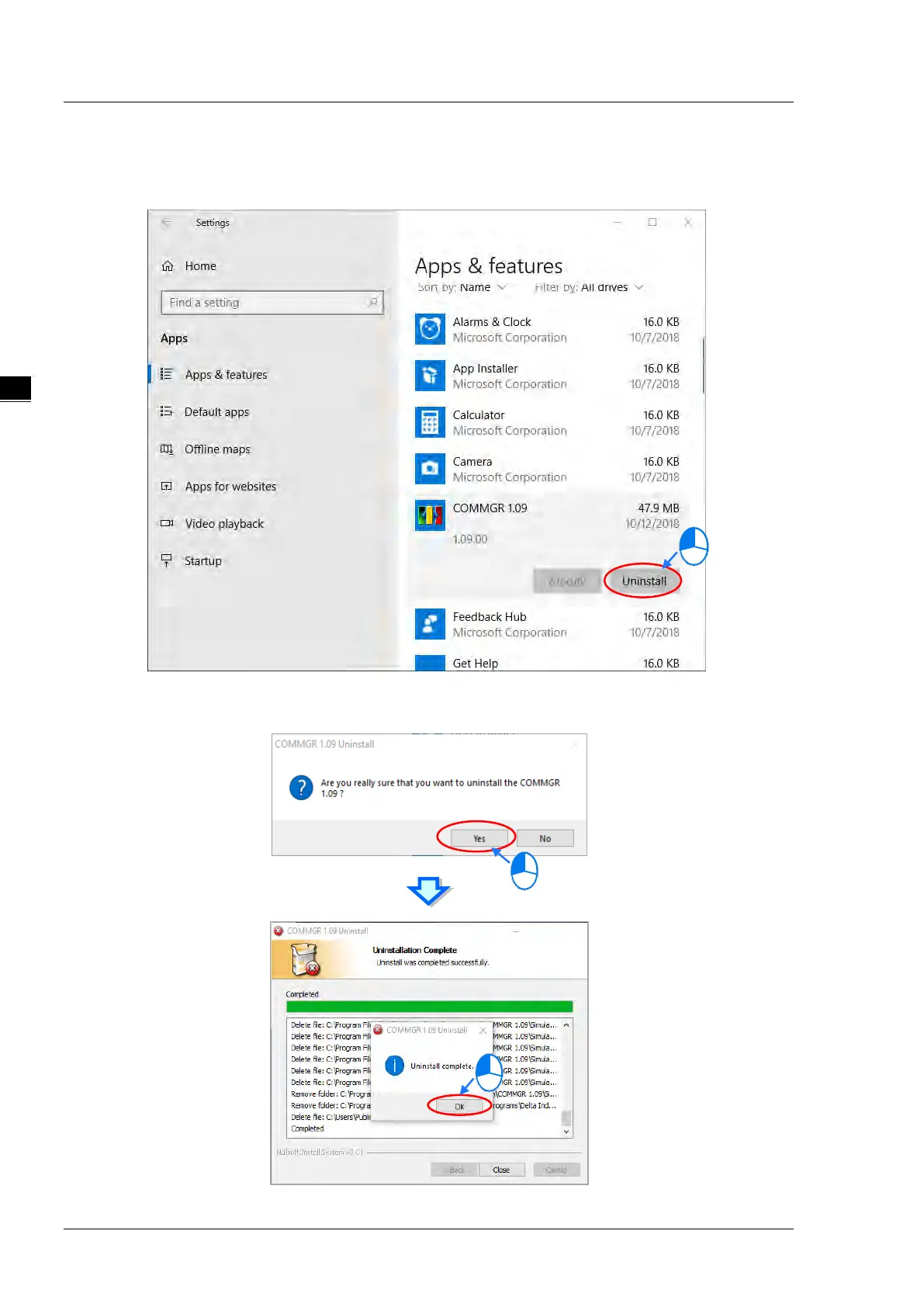 (1) Enter the settings of Apps & features in Windows, select COMMGR x.xx and click Uninstall.