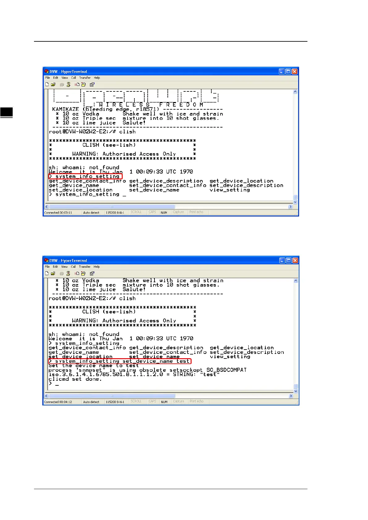 4. Type set_device_name and the new device name, such as “test”, and then press Enter.