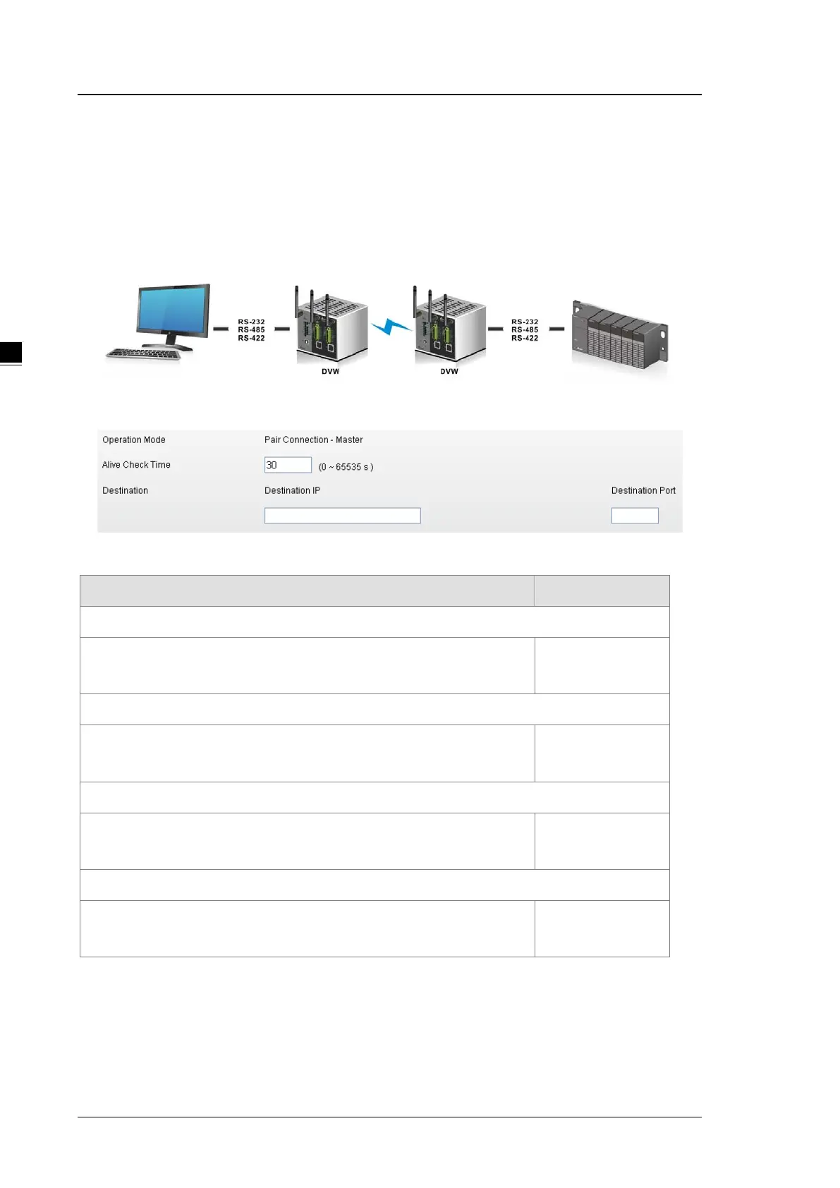 Pair Connection Master and Slave modes connect two DVW series over a network. The serial device can