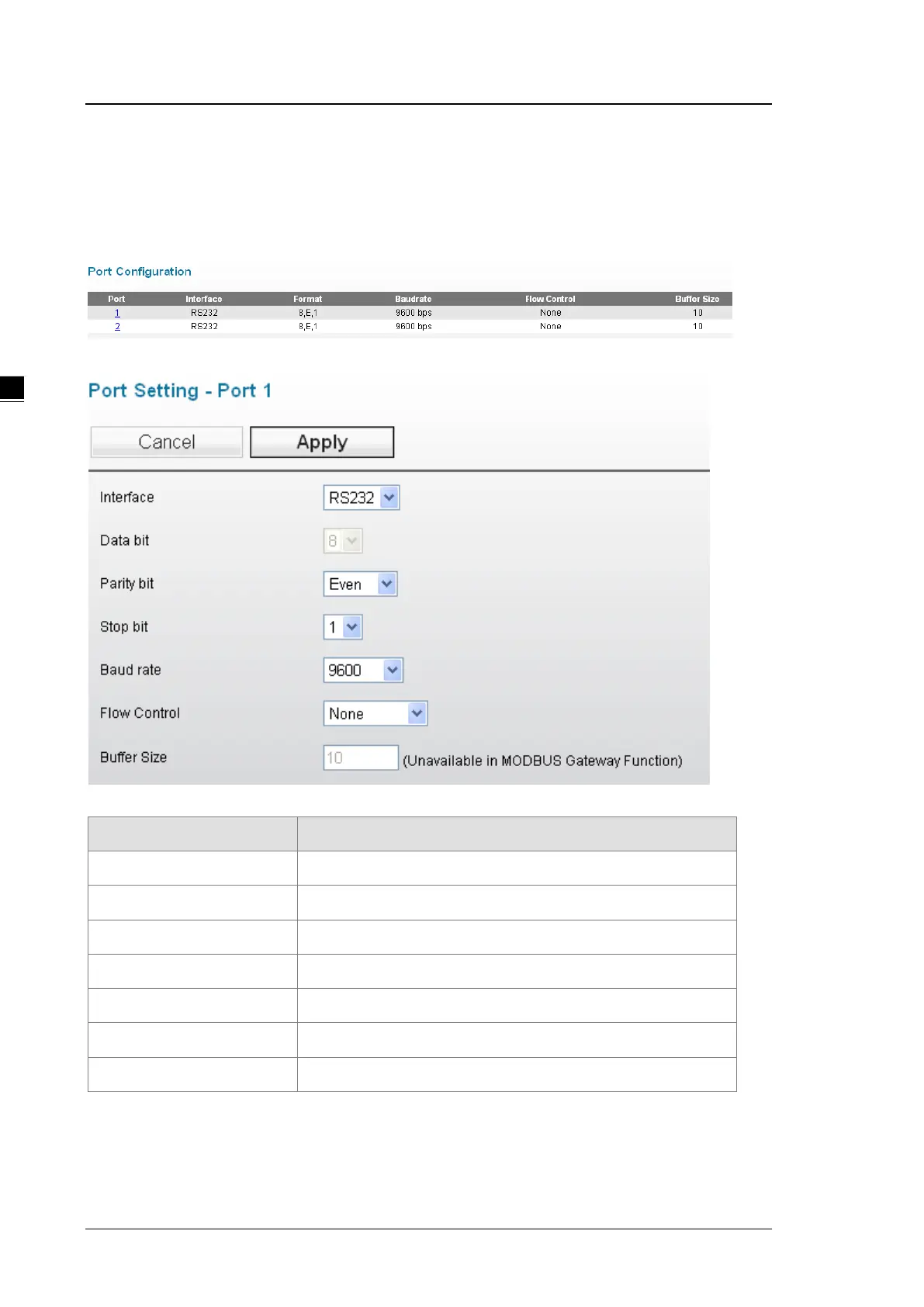 You can view the current communication settings for each serial port in this page. If you need to configure the