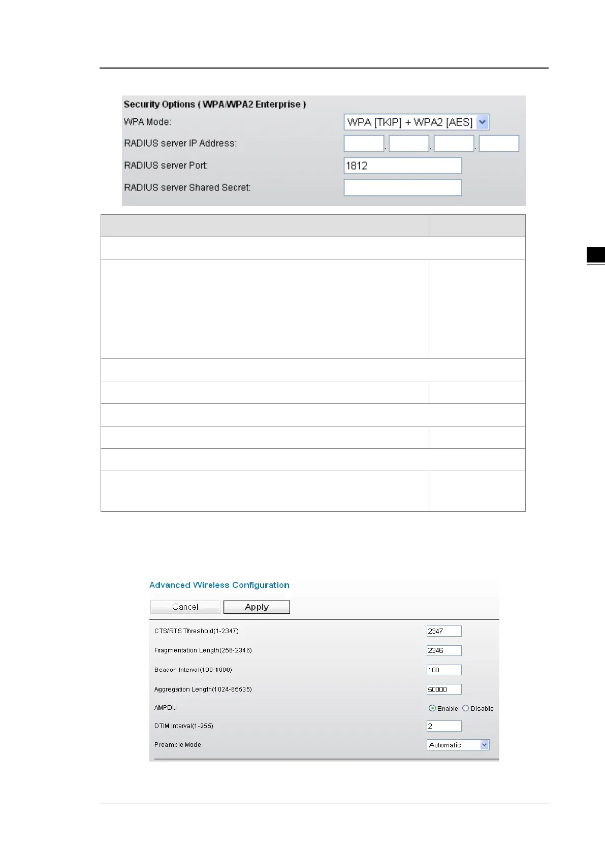 There are some advanced wireless parameters which can be configured in this page.