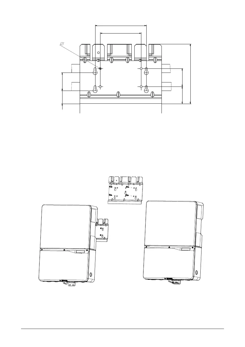 1. Mount the mounting plate to the wall with at least 4 screws and anchors (Ø 6mm). With 4