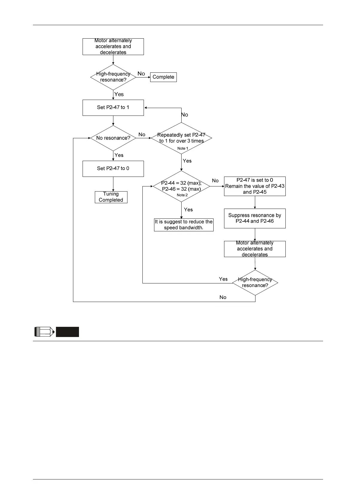2. If resonance still exists, repeatedly set P2-47 to 1 for 3 times and manually adjust the setting of