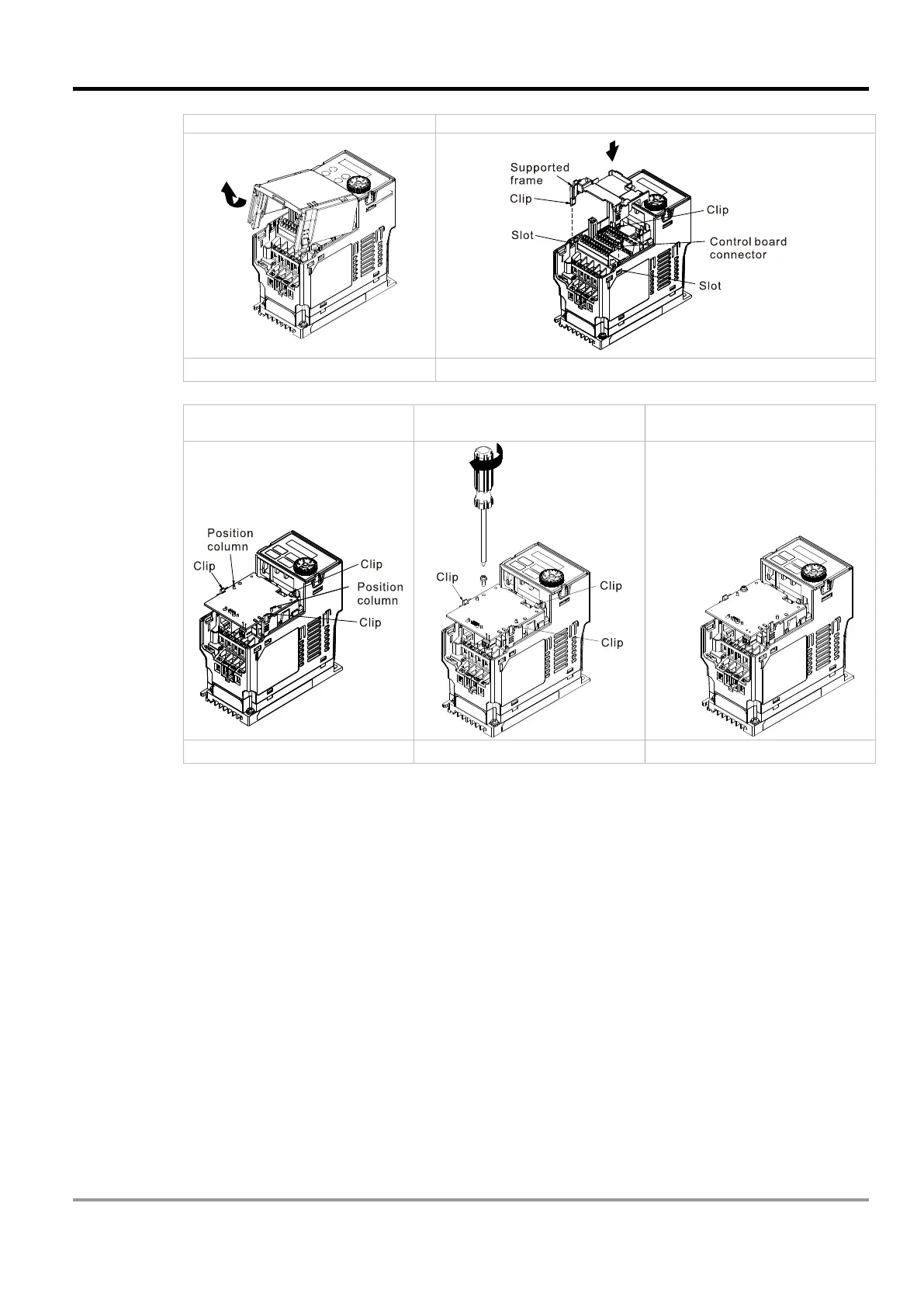card at the slots on the upper cover of the motor drive, and then press downward to have the four