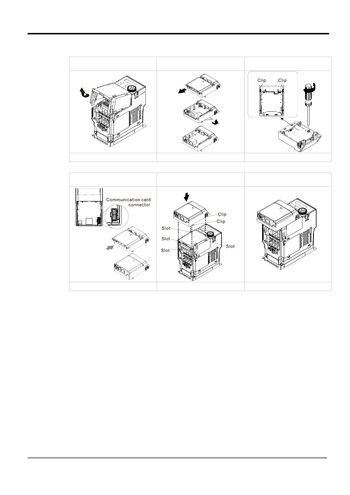 Installation method: Front-mount the communication card by connecting flat cables to the