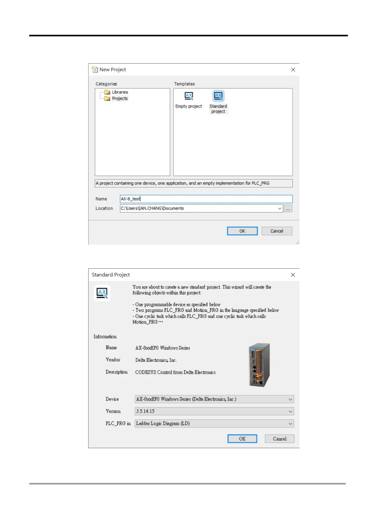 PLC_PRG in. Then click OK to create a new project.