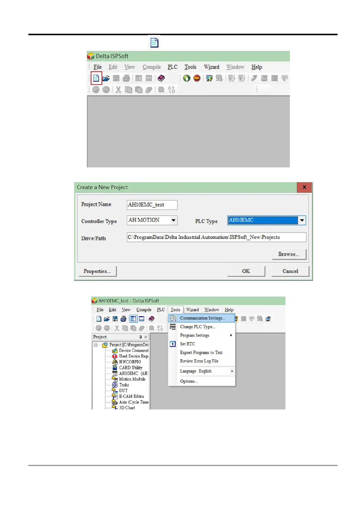 4. Select AH MOTION as Controller Type. Then select AH10EMC as PLC Type.