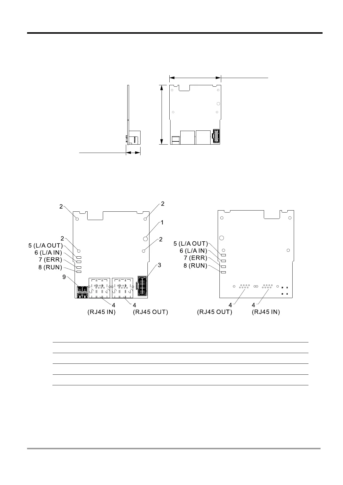 4. RJ45 connection port 8. RUN (Communication card RUN indicator)